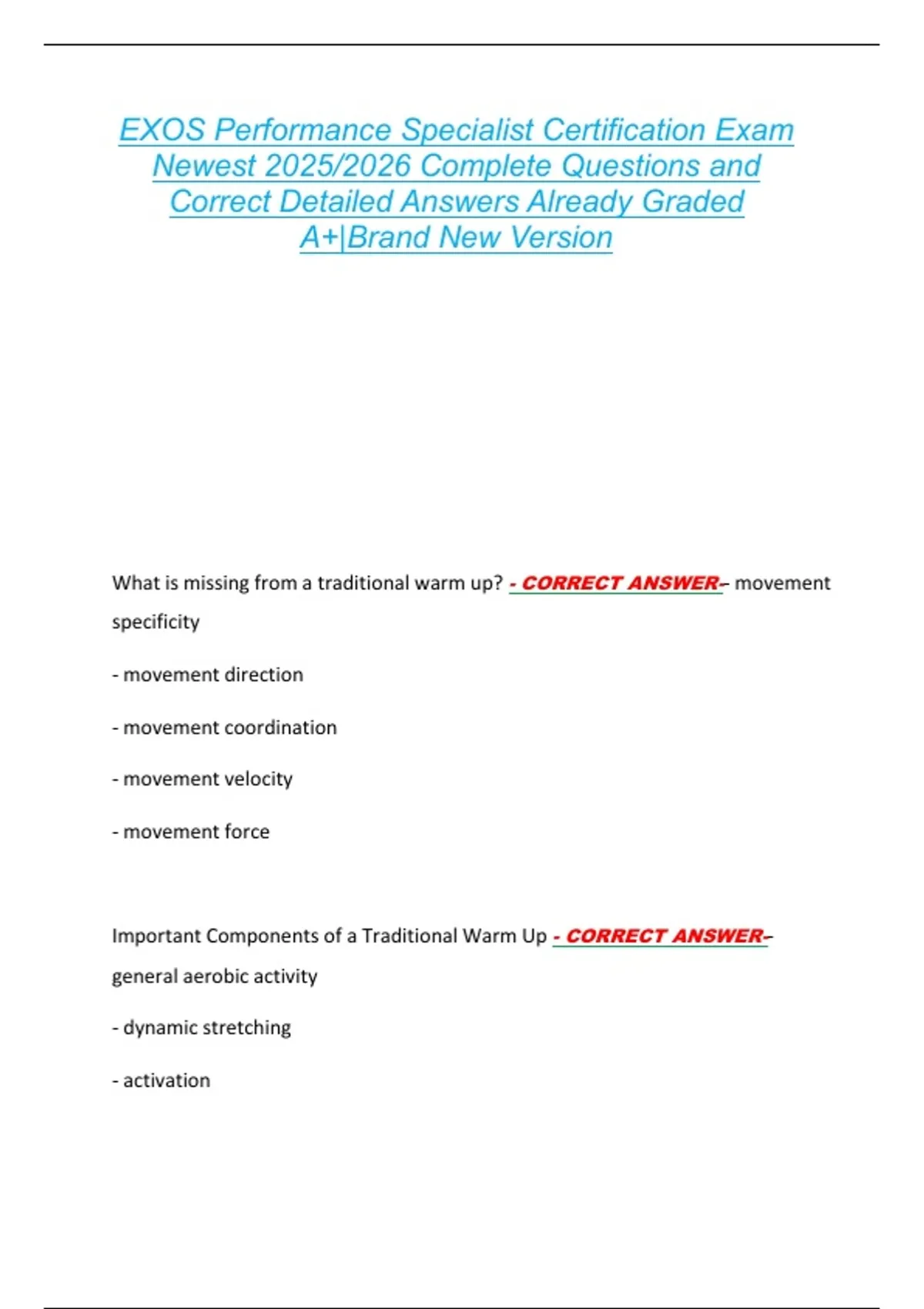 Important Components of a Traditional Warm Up - CORRECT ANSWER--