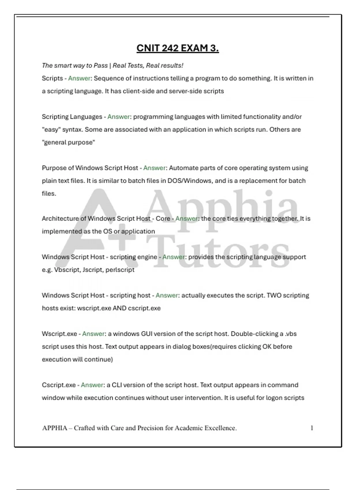 Windows Script Host - scripting host - Answer: actually executes the script. TWO scripting