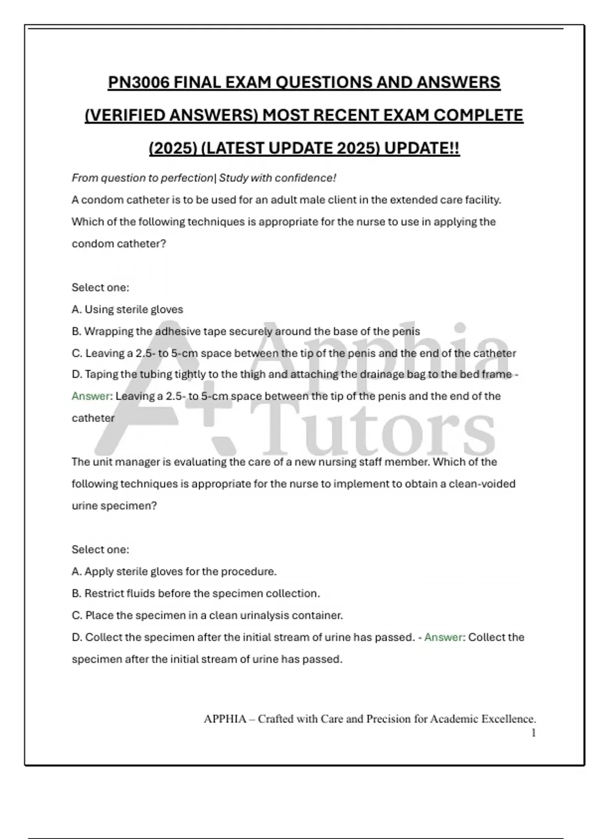 (VERIFIED ANSWERS) MOST RECENT EXAM COMPLETE