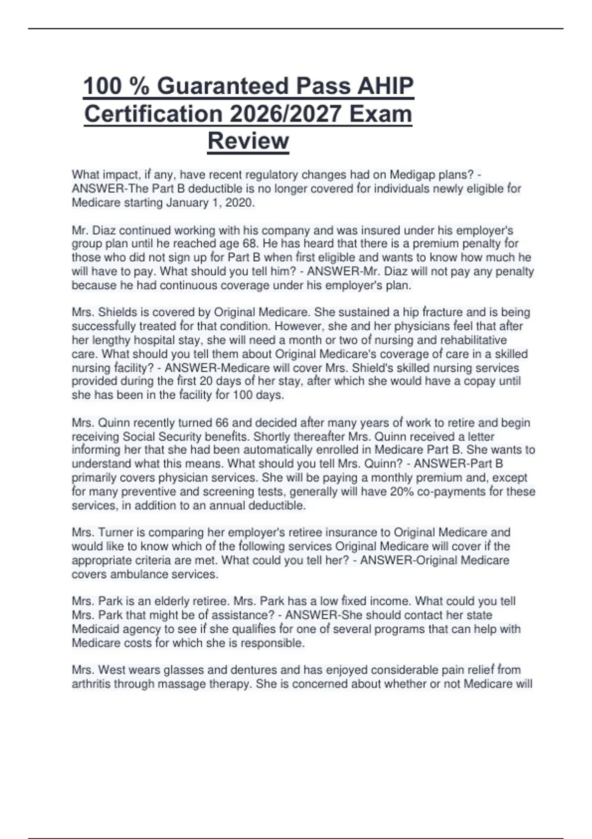 100 % Guaranteed Pass AHIP Certification 2026/2027 Exam Review