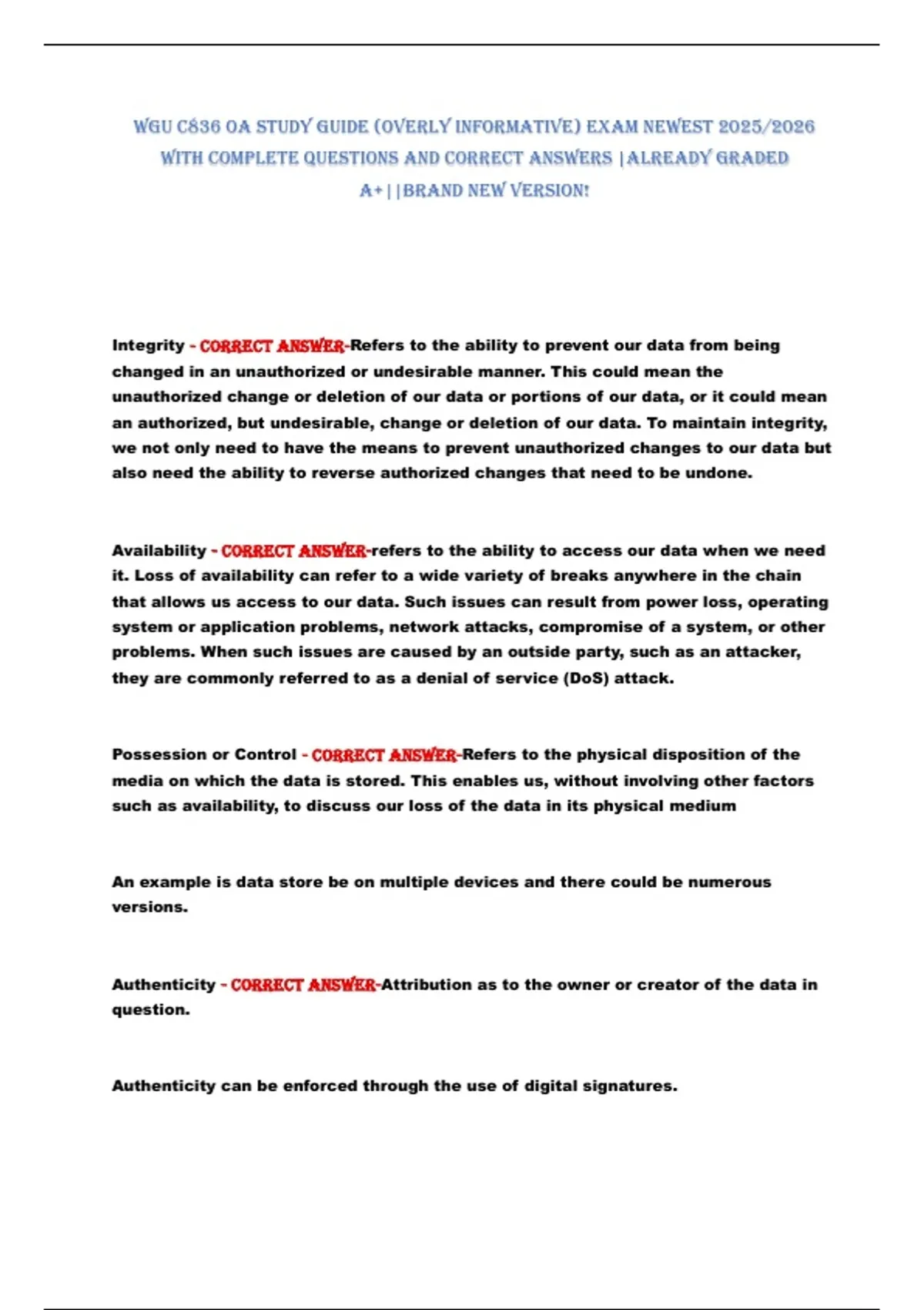 WGU C836 OA StUdy GUide (Overly infOrmAtive) exAm neWeSt 2025/2026