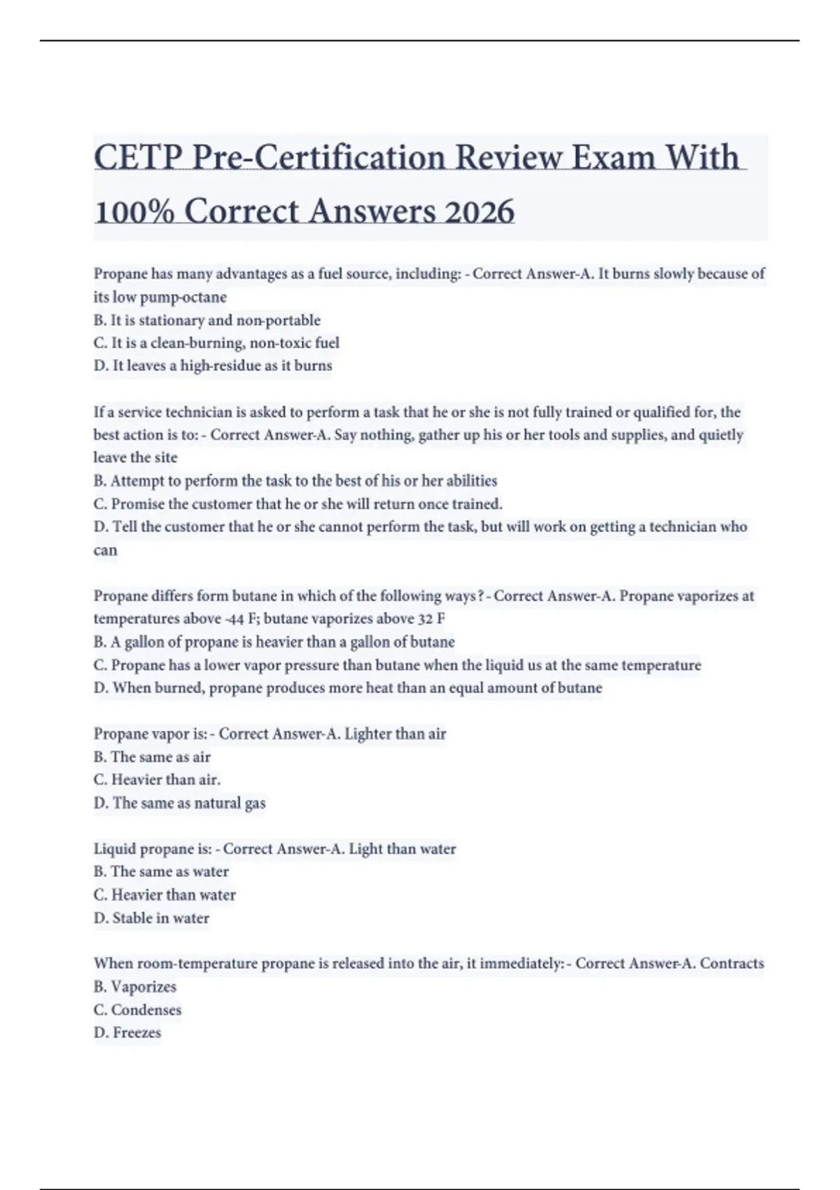This document provides a thorough pre-certification review for the CETP exam, covering the essential topics and concepts required for successful certification. It includes structured review material designed to support exam preparation and reinforce key knowledge areas for the 2025 CETP certification.