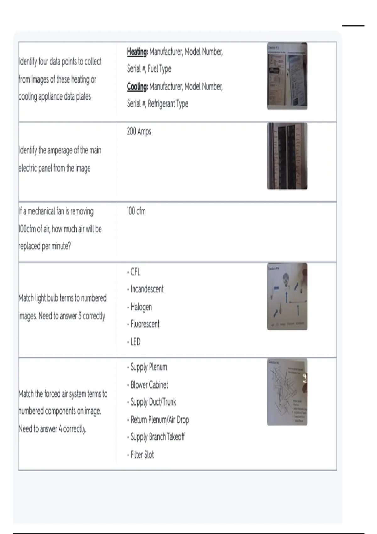 Match the forced air system terms to