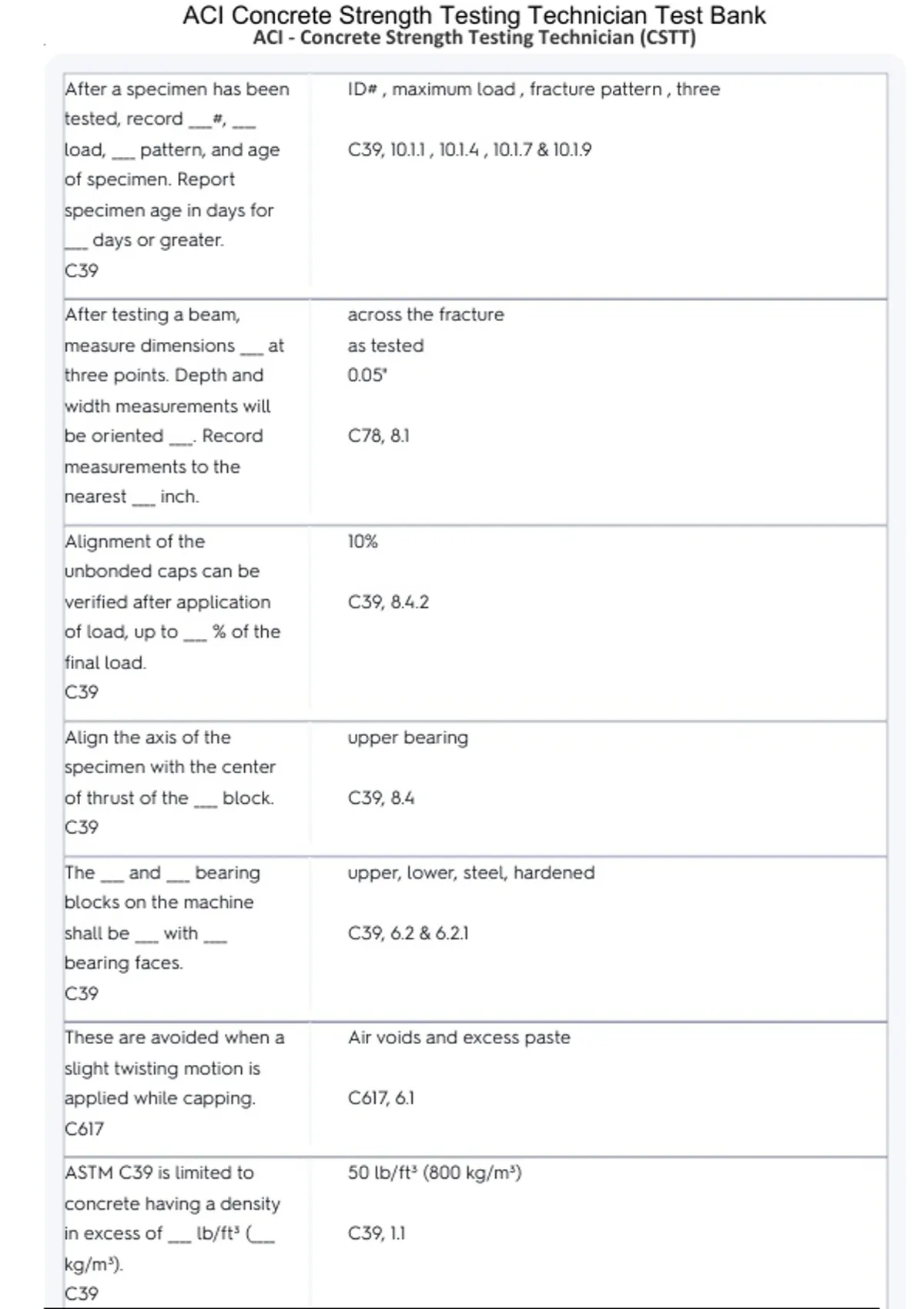Prepare for the ACI Concrete Strength Testing Technician (CSTT) certification with this all-in-one study bundle. Includes practice questions, verified answers, detailed explanations, and exam-focused content covering concrete strength testing, quality control, safety protocols, and laboratory procedures. Perfect for civil engineers, construction professionals, and technicians seeking structured study, efficient review, and certification success.