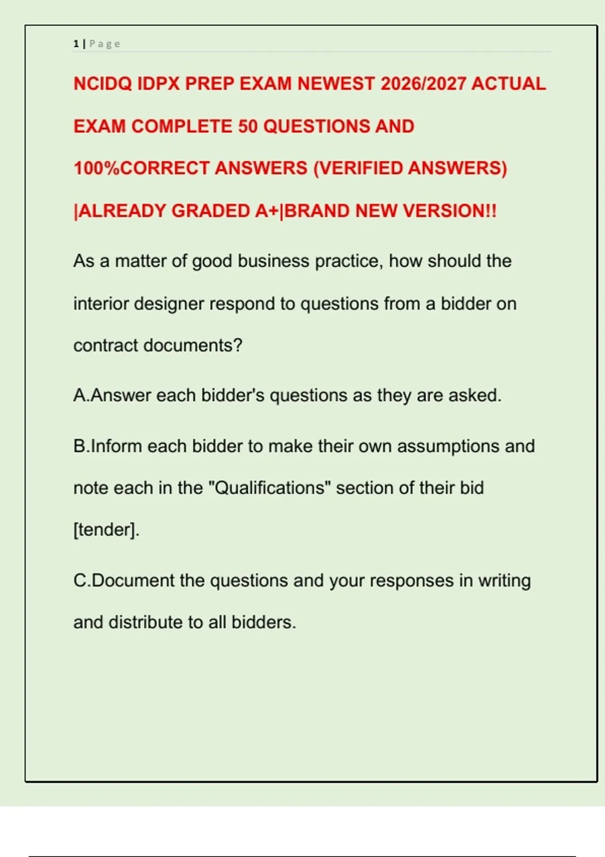 NCIDQ IDPX PREP EXAM NEWEST 2026/2027 ACTUAL