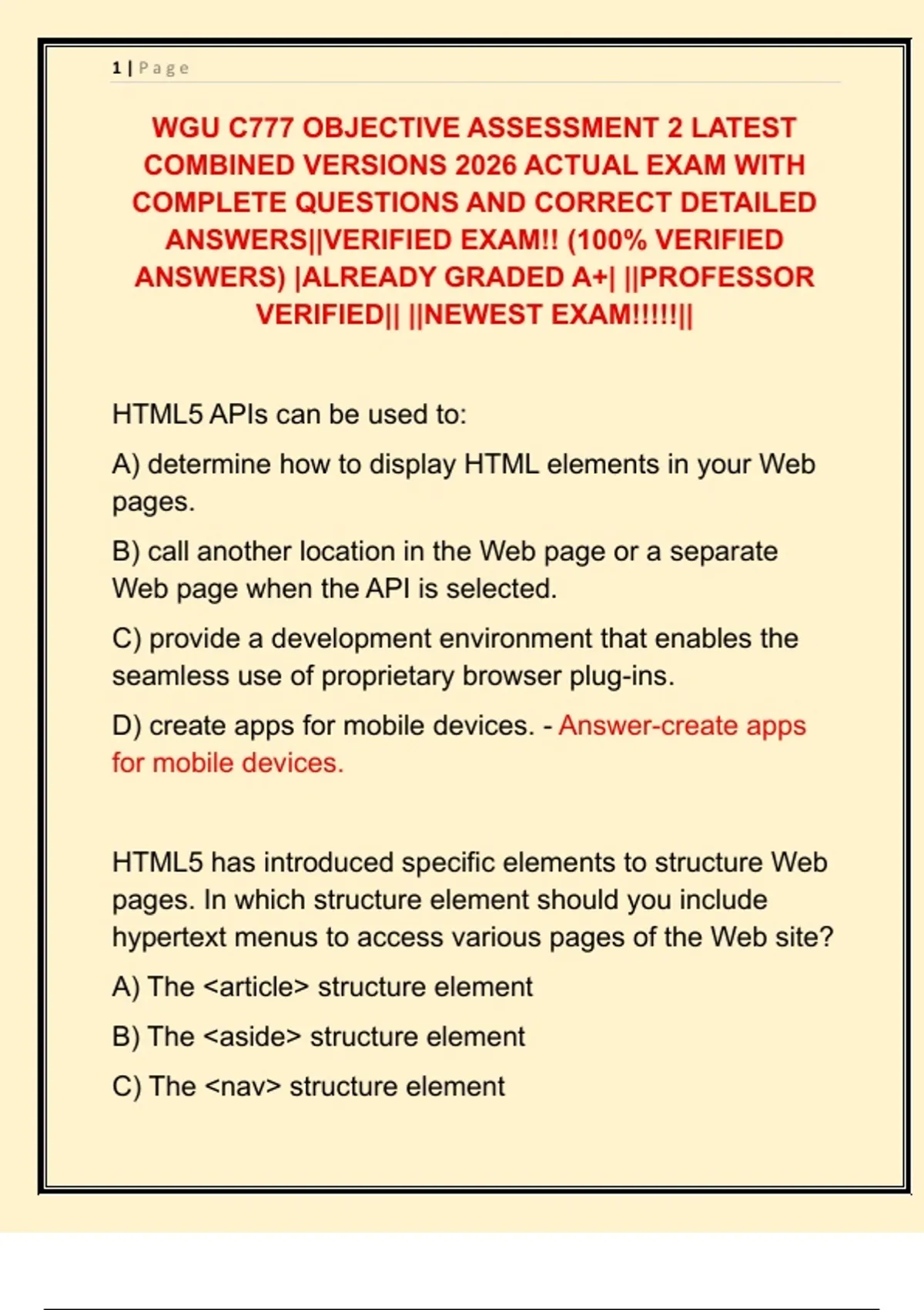 VERIFIED|| ||NEWEST EXAM!!!!!||