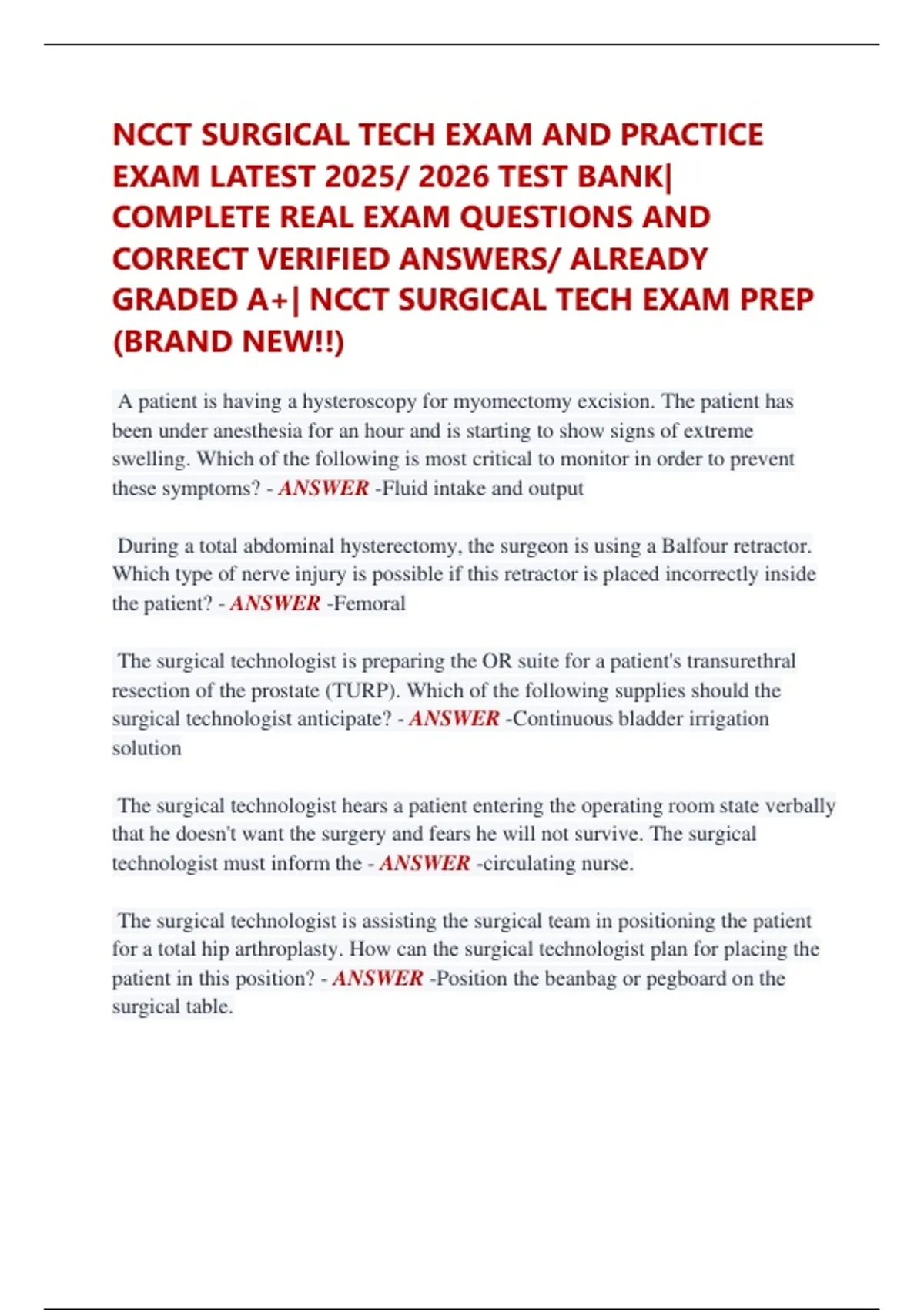 GRADED A+| NCCT SURGICAL TECH EXAM PREP