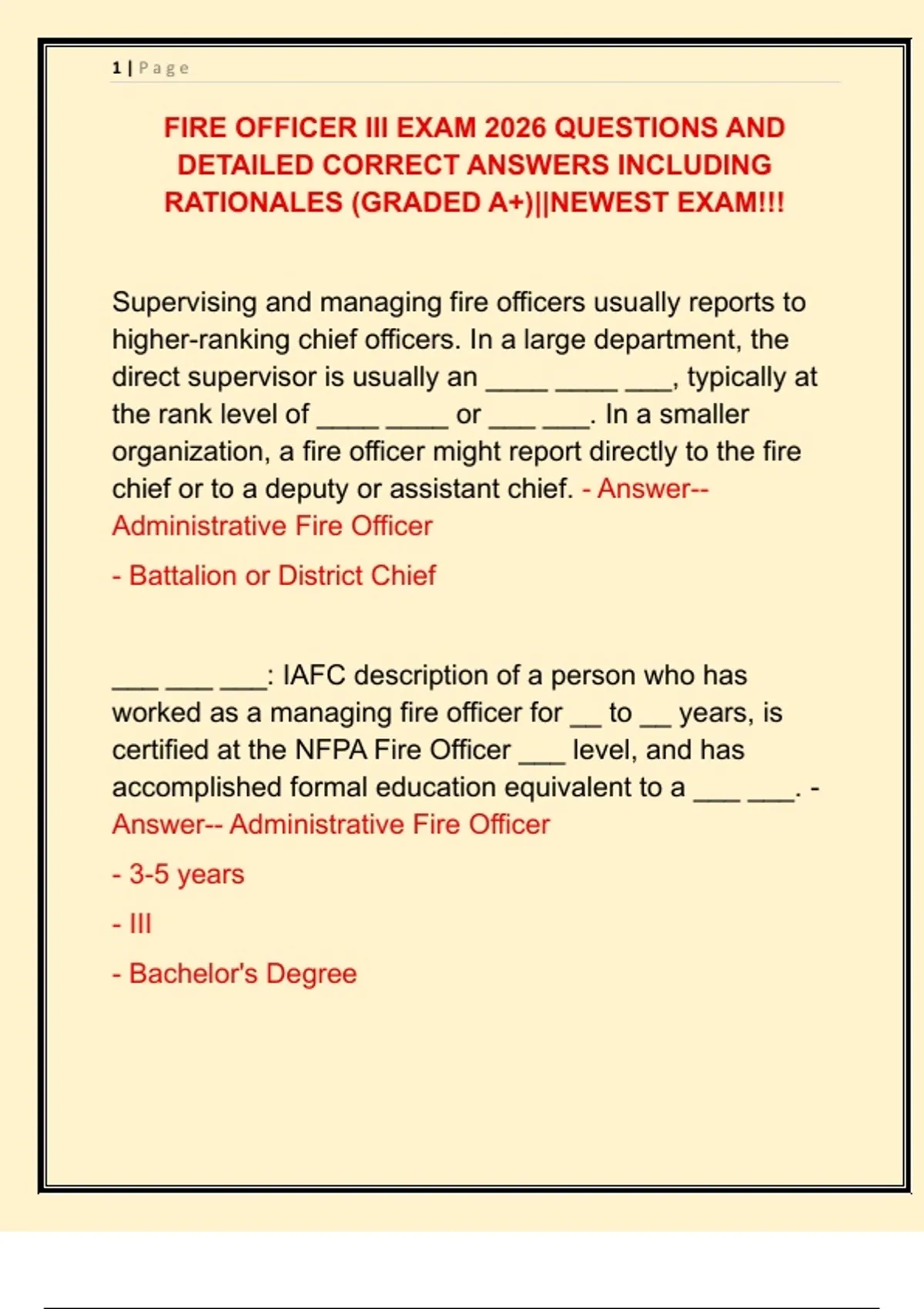 FIRE OFFICER III EXAM 2026 QUESTIONS AND
