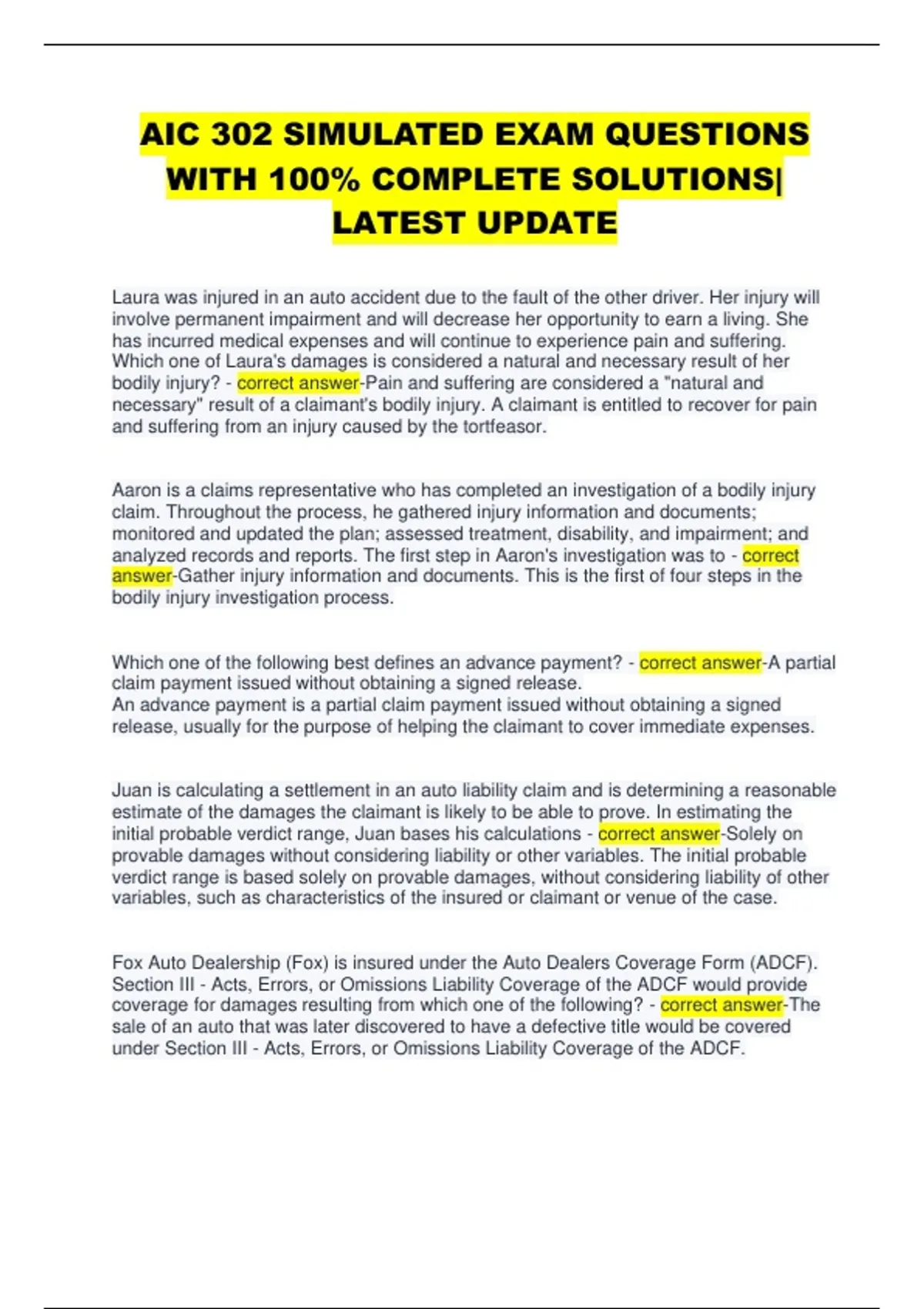 bodily injury? - correct answer-Pain and suffering are considered a "natural and