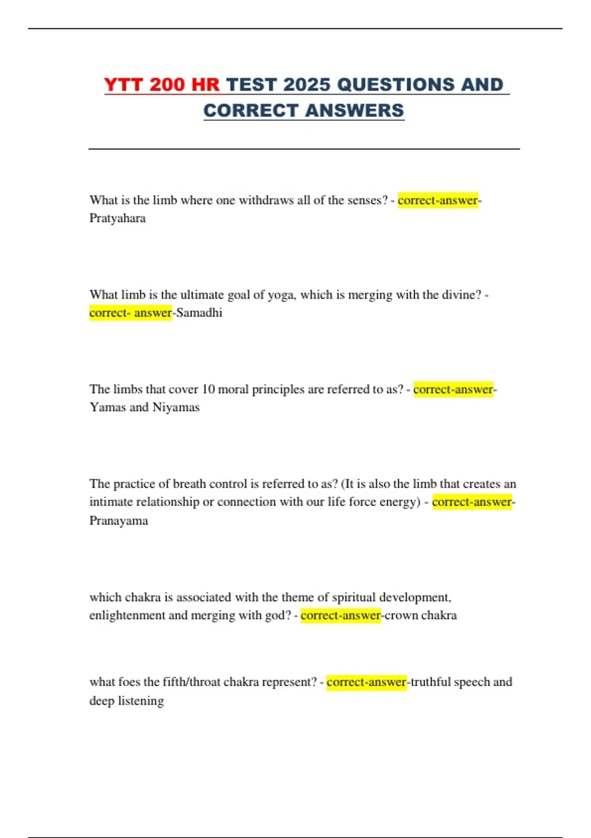 CORRECT ANSWERS