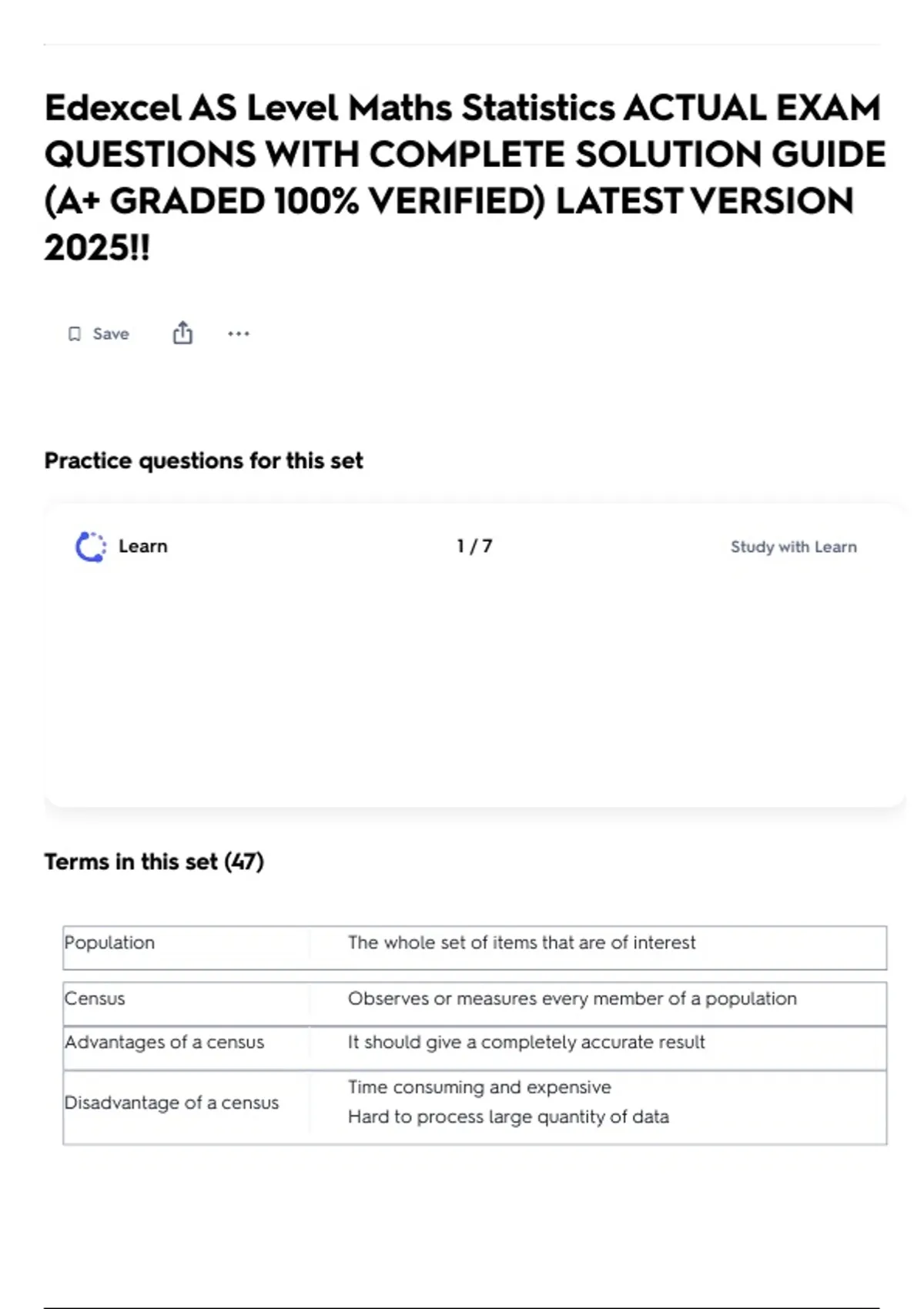 Edexcel AS Level Maths Statistics ACTUAL EXAM QUESTIONS WITH COMPLETE SOLUTION GUIDE (A+ GRADED 100% VERIFIED) LATEST VERSION 2025!!