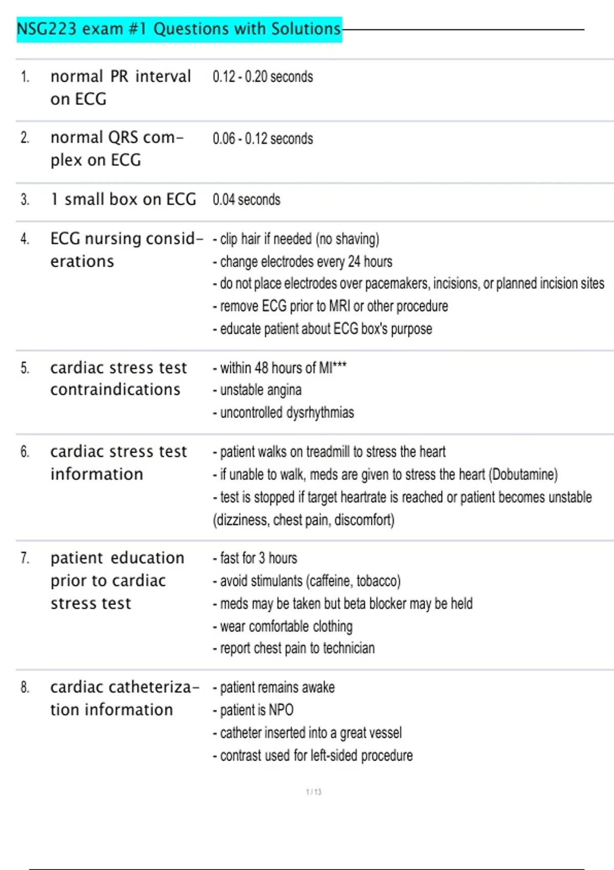 1. normal PR interval 0.12 - 0.20 seconds