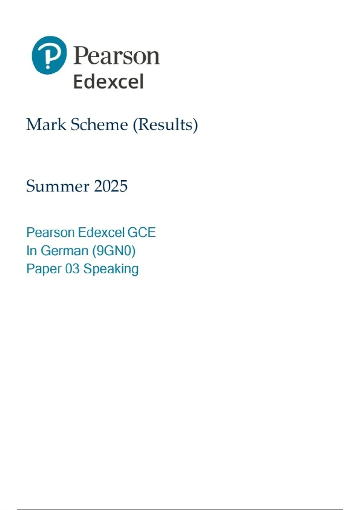 Pearson Edexcel GCE In German (9GN0) Paper 03 Speaking Mark Scheme (Results) Summer 2025