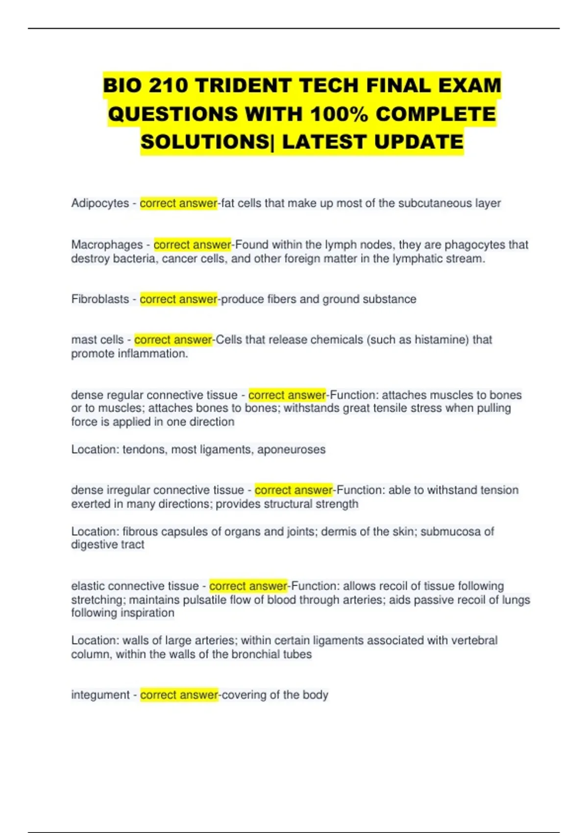 BIO 210 TRIDENT TECH FINAL EXAM QUESTIONS WITH 100% COMPLETE SOLUTIONS| LATEST UPDATE