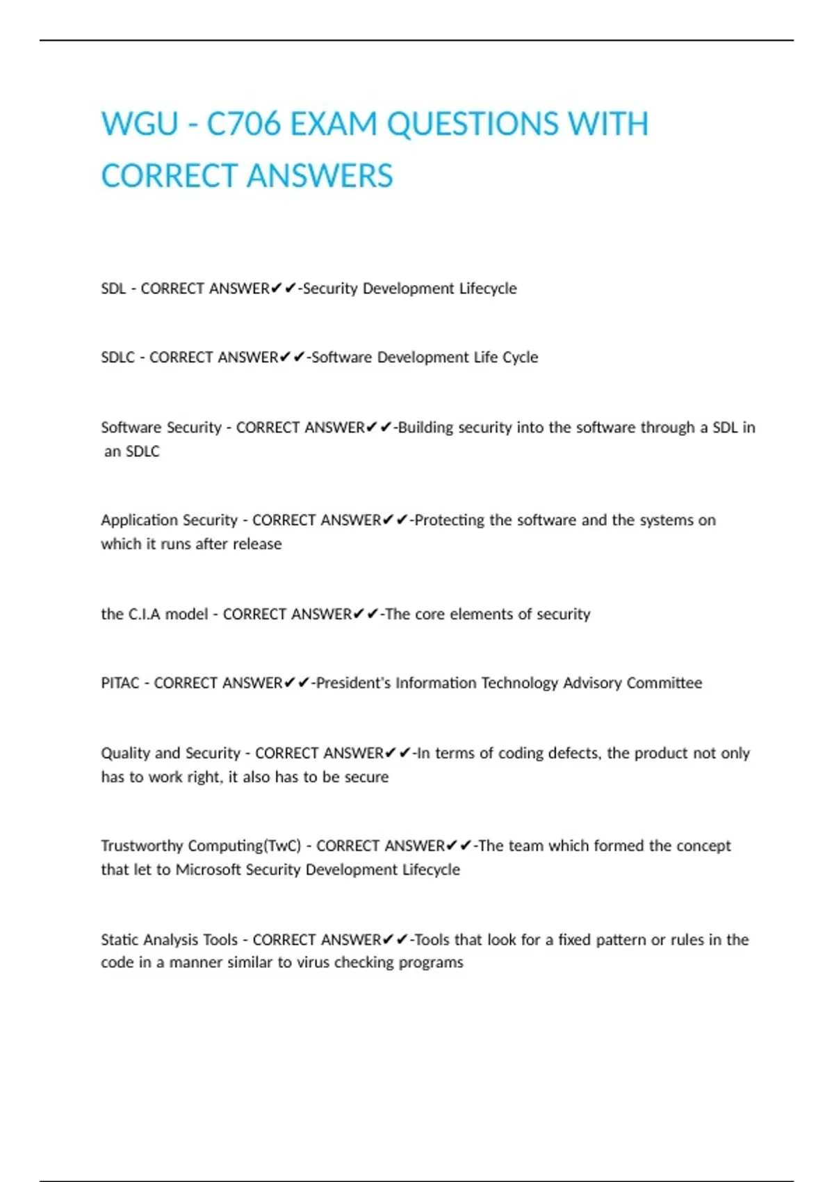 SDLC |- |CORRECT |ANSWER✔✔-Software |Development |Life |Cycle