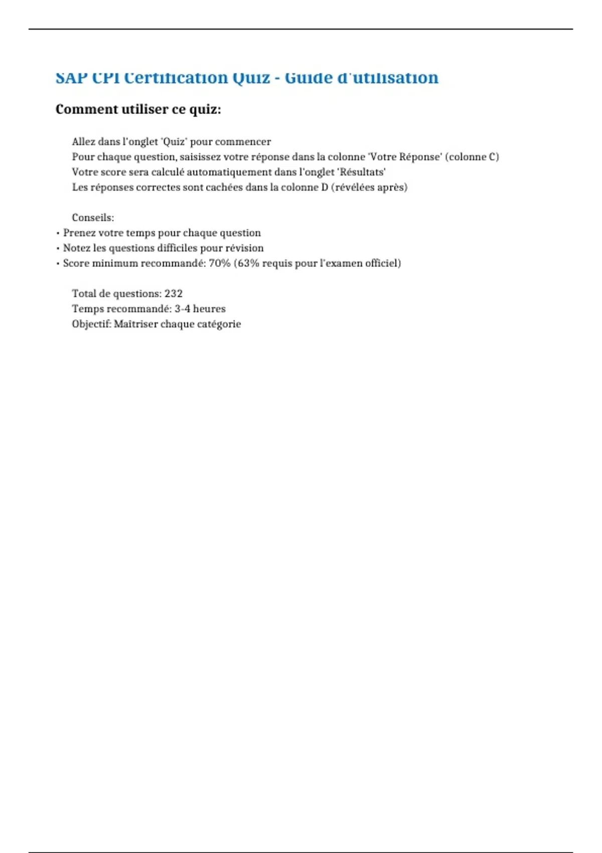 Pour chaque question, saisissez votre réponse dans la colonne 'Votre Réponse' (colonne C)