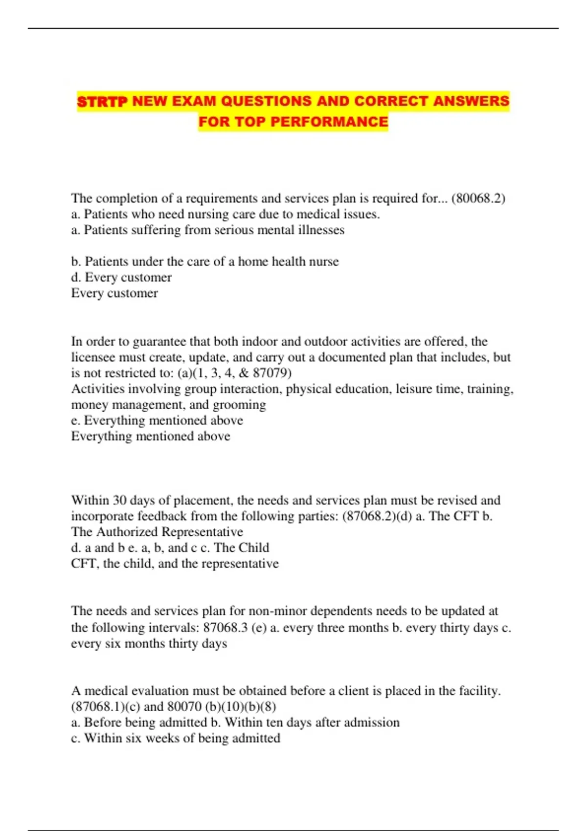 STRTP NEW EXAM QUESTIONS AND CORRECT ANSWERS