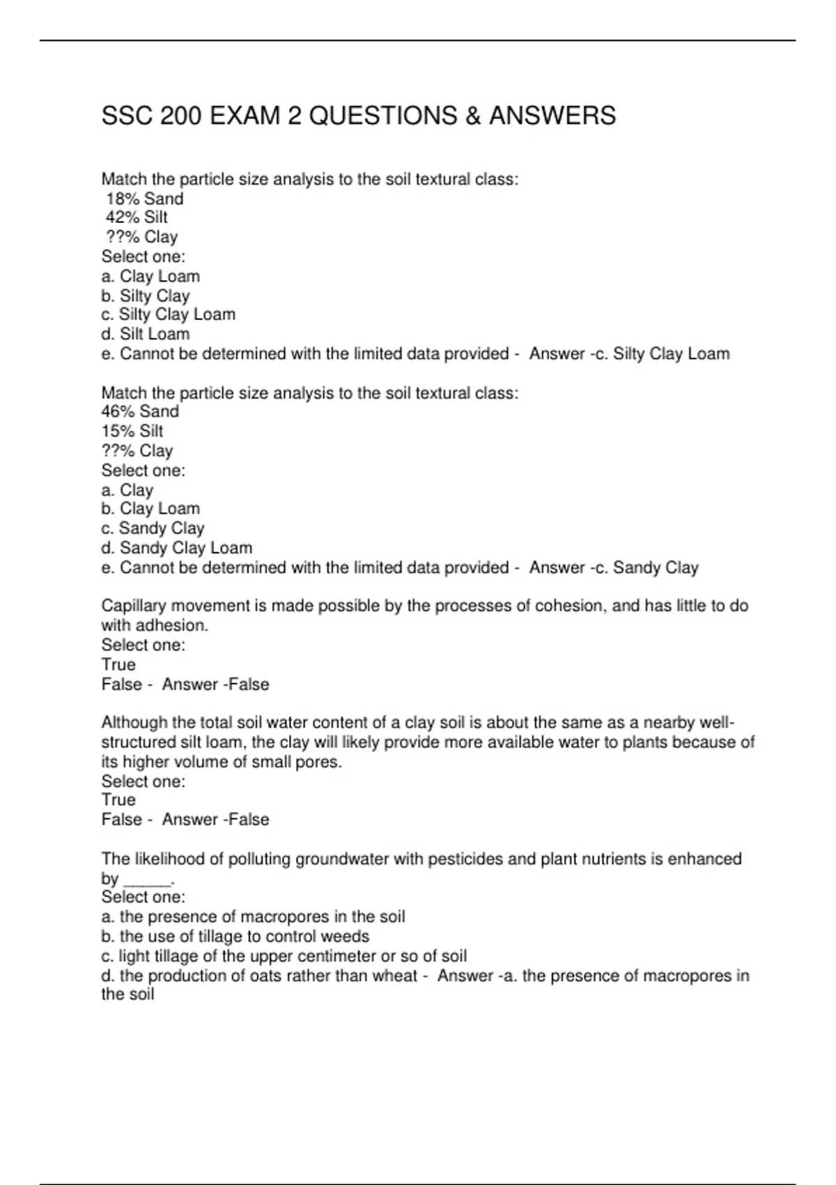 e. Cannot be determined with the limited data provided - Answer -c. Silty Clay Loam