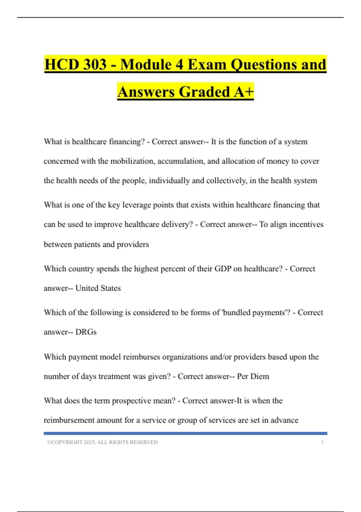 model? Select all that apply. - Correct answer-- A prospective payment model