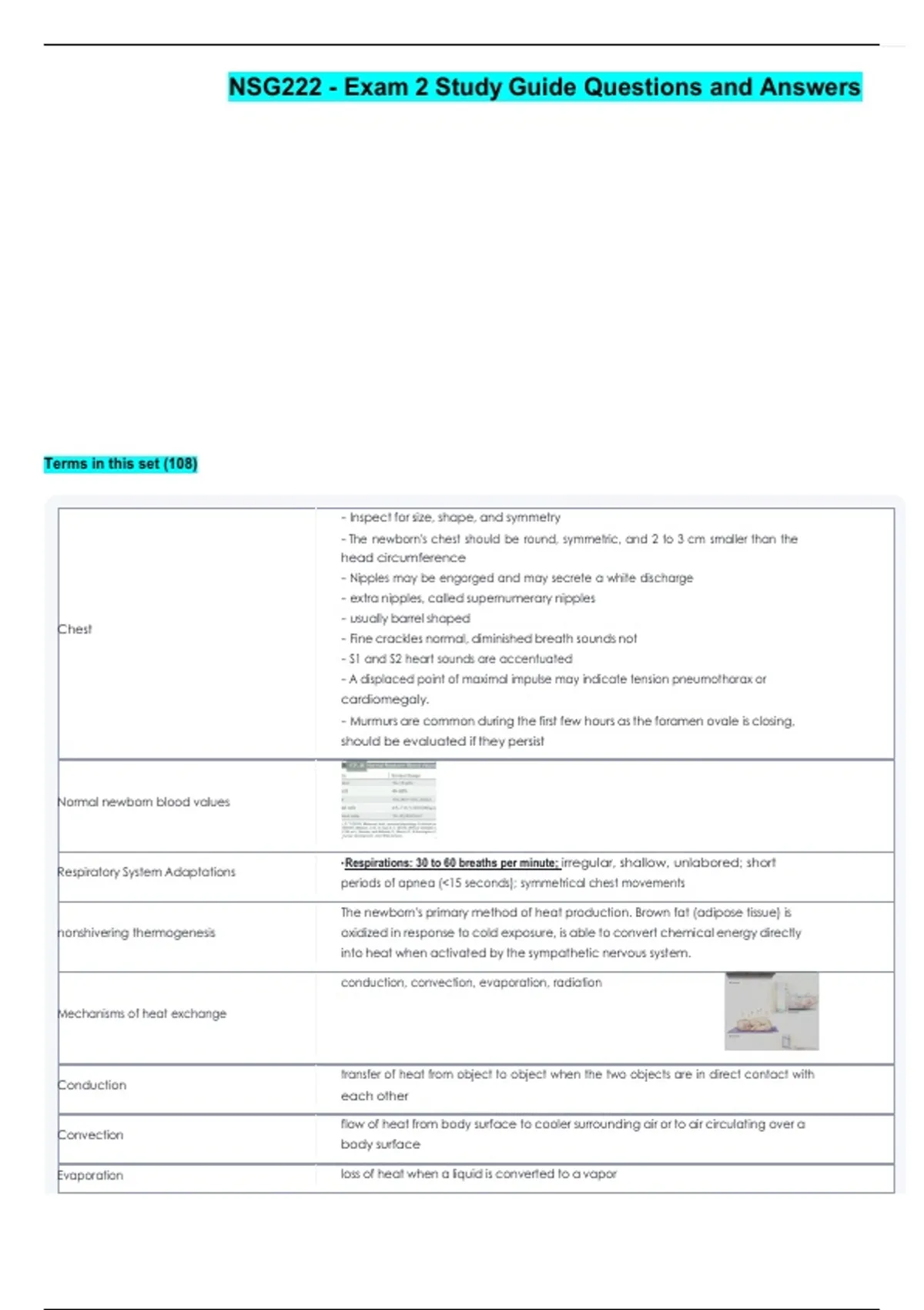 NSG222 - Exam 2 Study Guide Questions and Answers