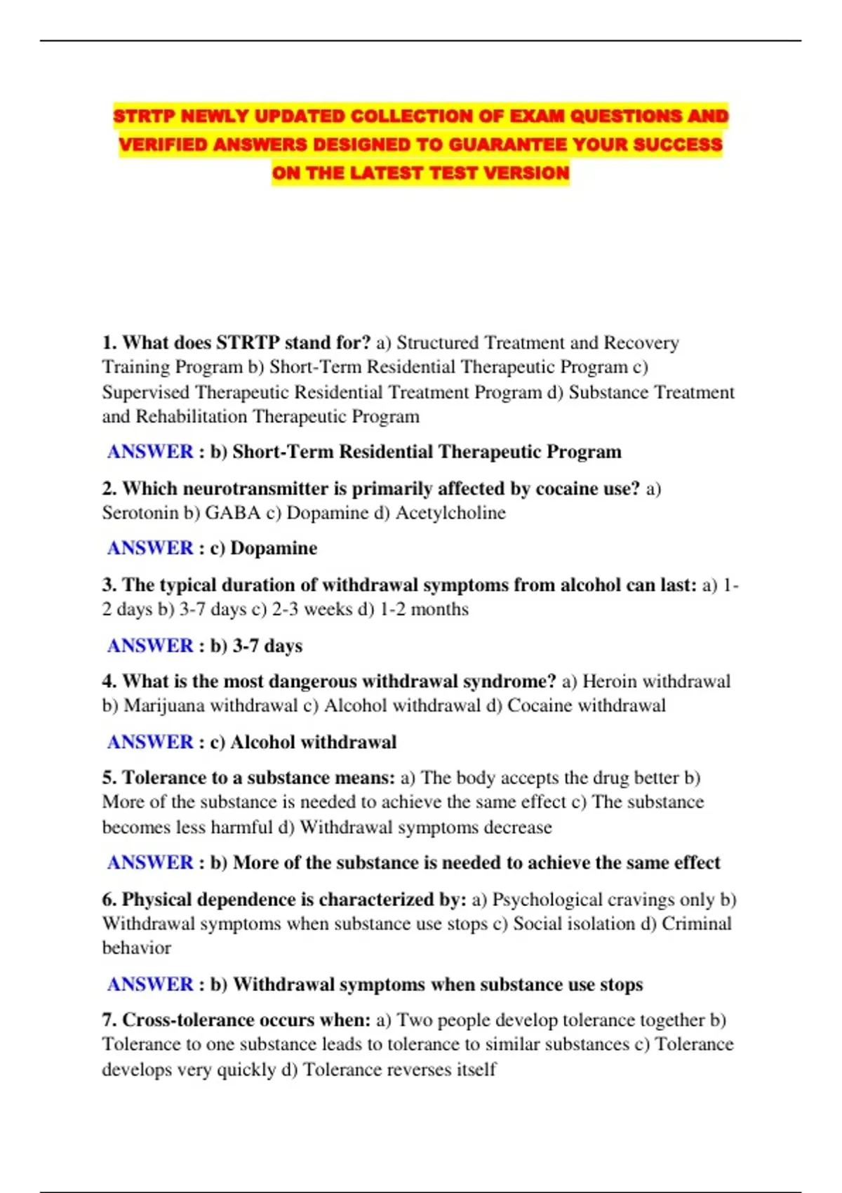 STRTP NEWLY UPDATED COLLECTION OF EXAM QUESTIONS AND