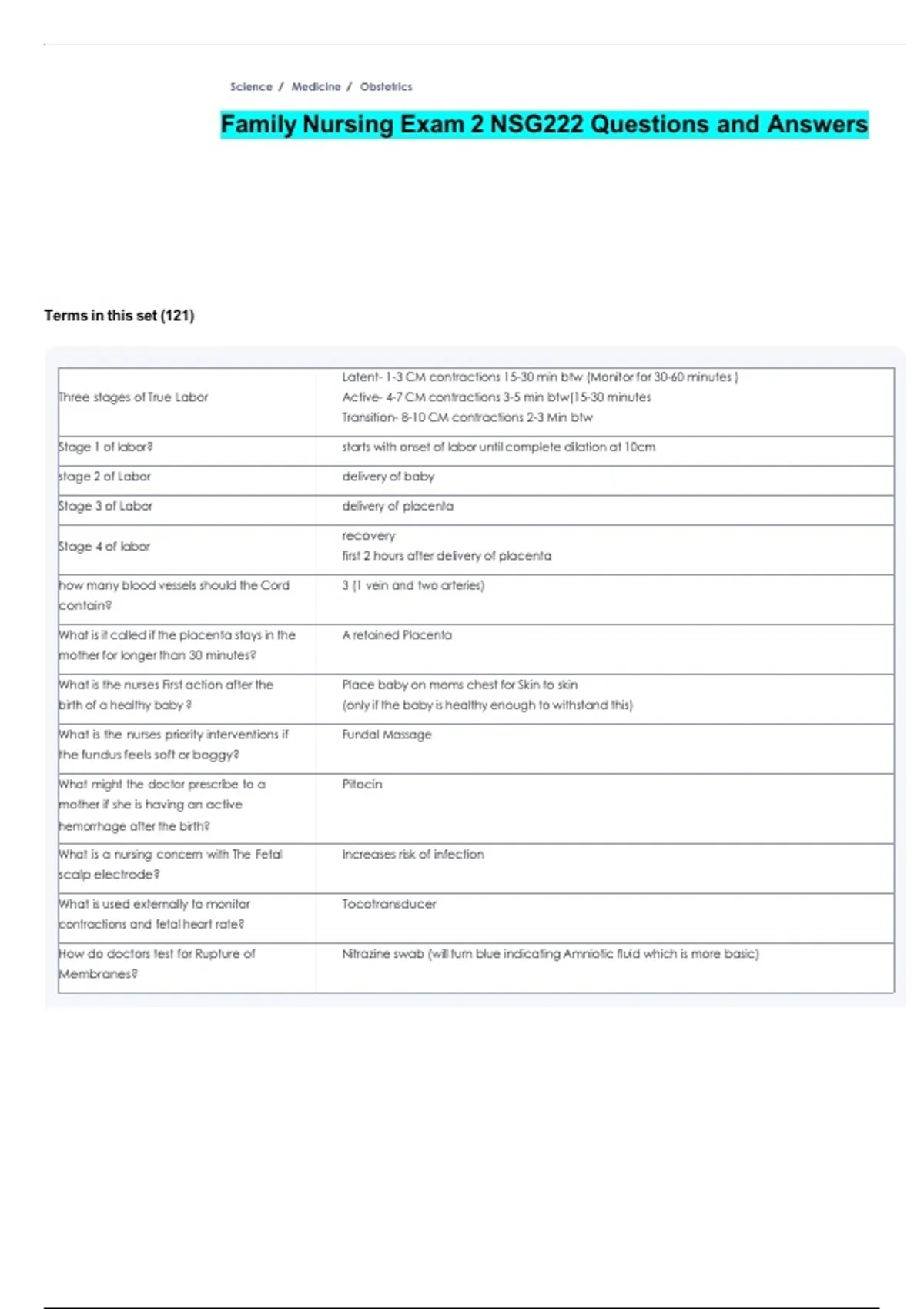 Family Nursing Exam 2 NSG222 Questions and Answers