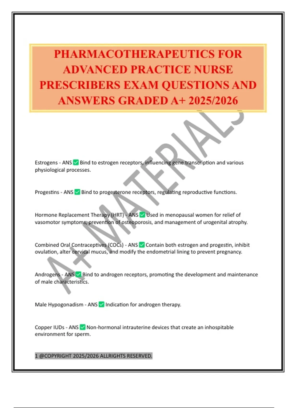 PRESCRIBERS EXAM QUESTIONS AND