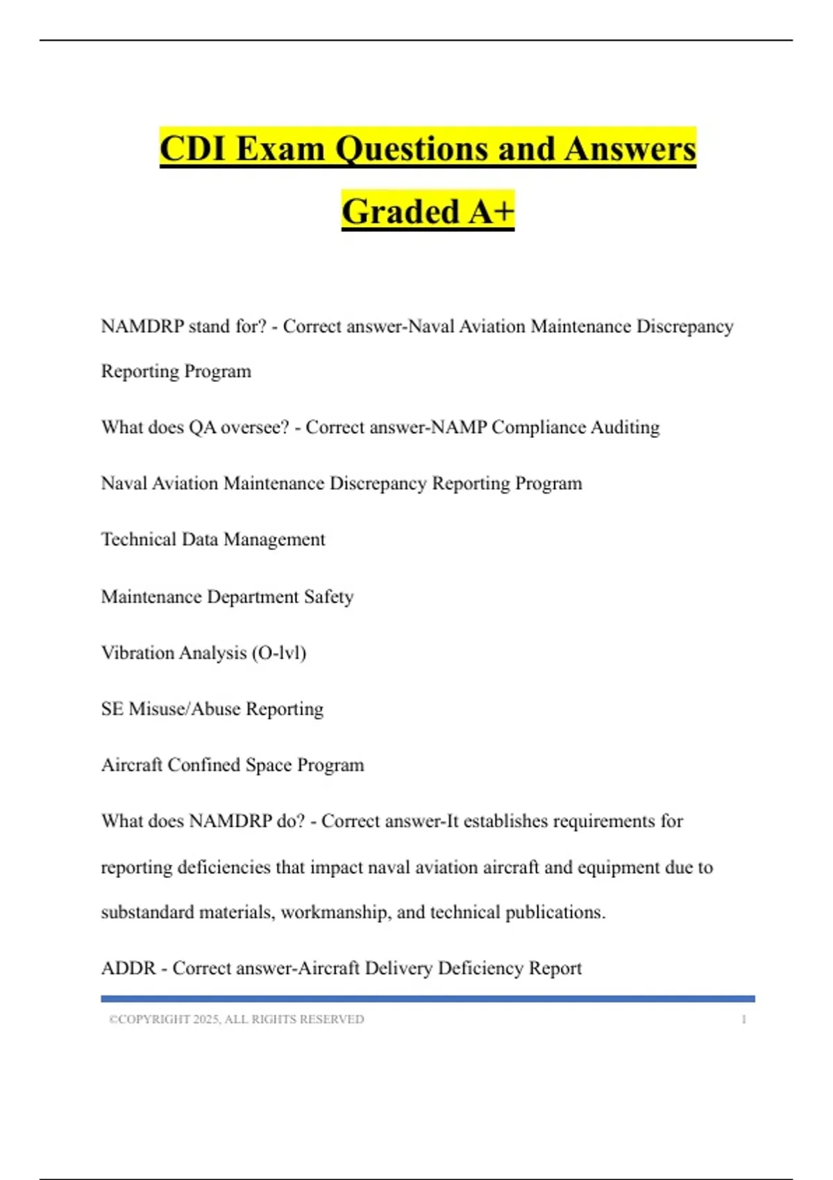 NAMDRP stand for? - Correct answer-Naval Aviation Maintenance Discrepancy