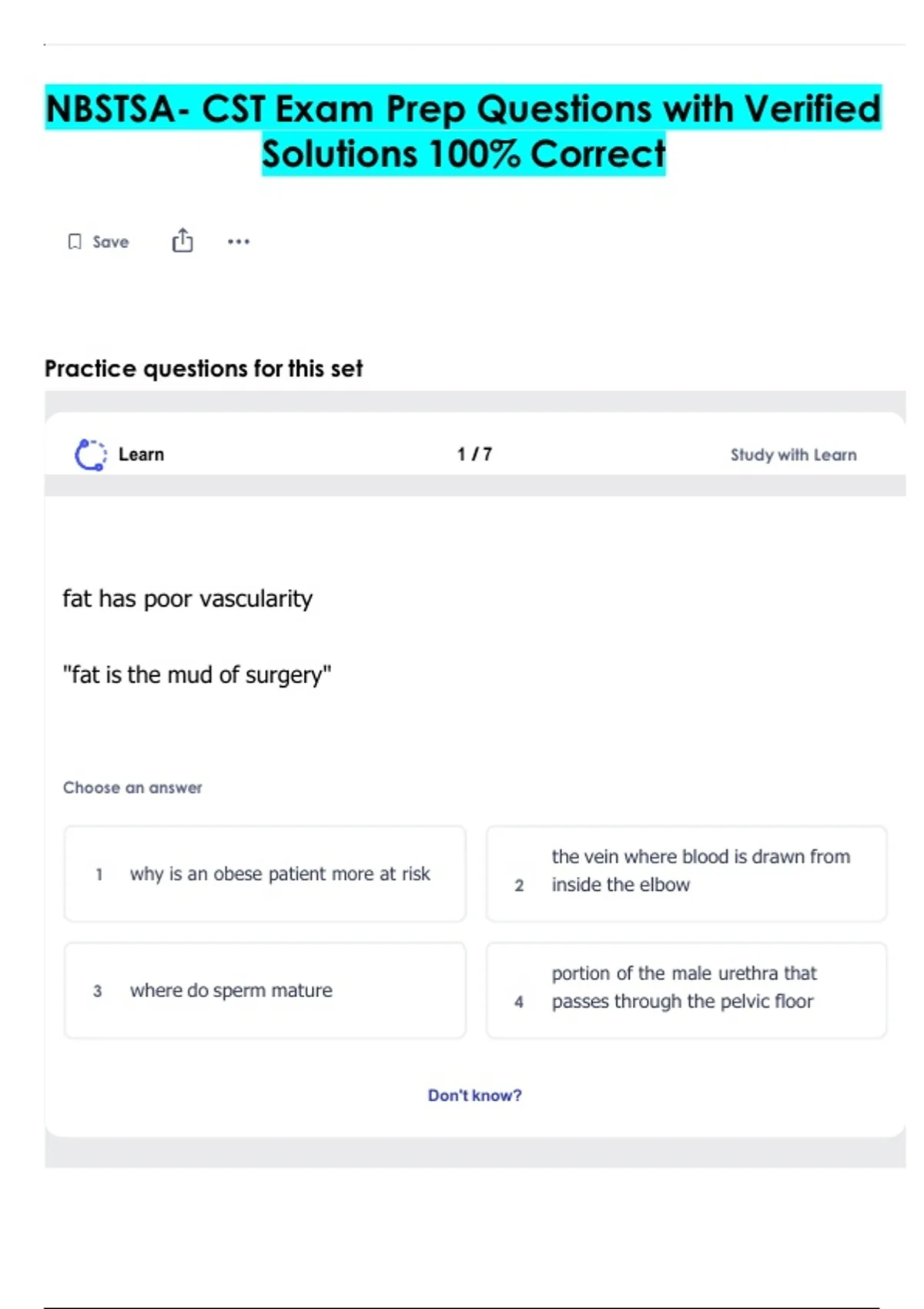 NBSTSA- CST Exam Prep Questions with Verified