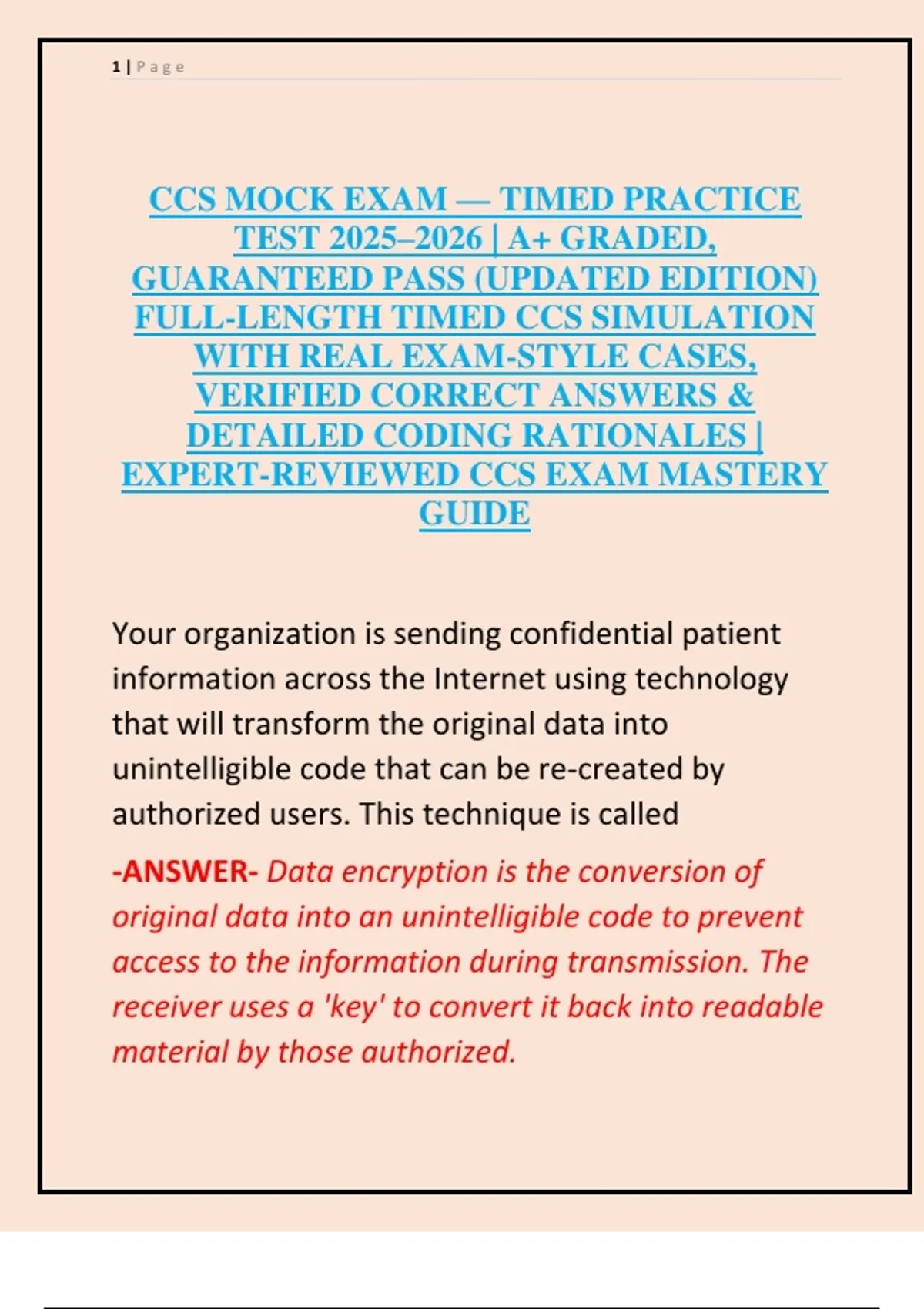 CCS MOCK EXAM — TIMED PRACTICE TEST 2025–2026 | A+ GRADED, GUARANTEED PASS (UPDATED EDITION) Full-Length Timed CCS Simulation with Real Exam-Style Cases, Verified Correct Answers & Detailed Coding Rationales | Expert-Reviewed CCS Exam Mastery Guide