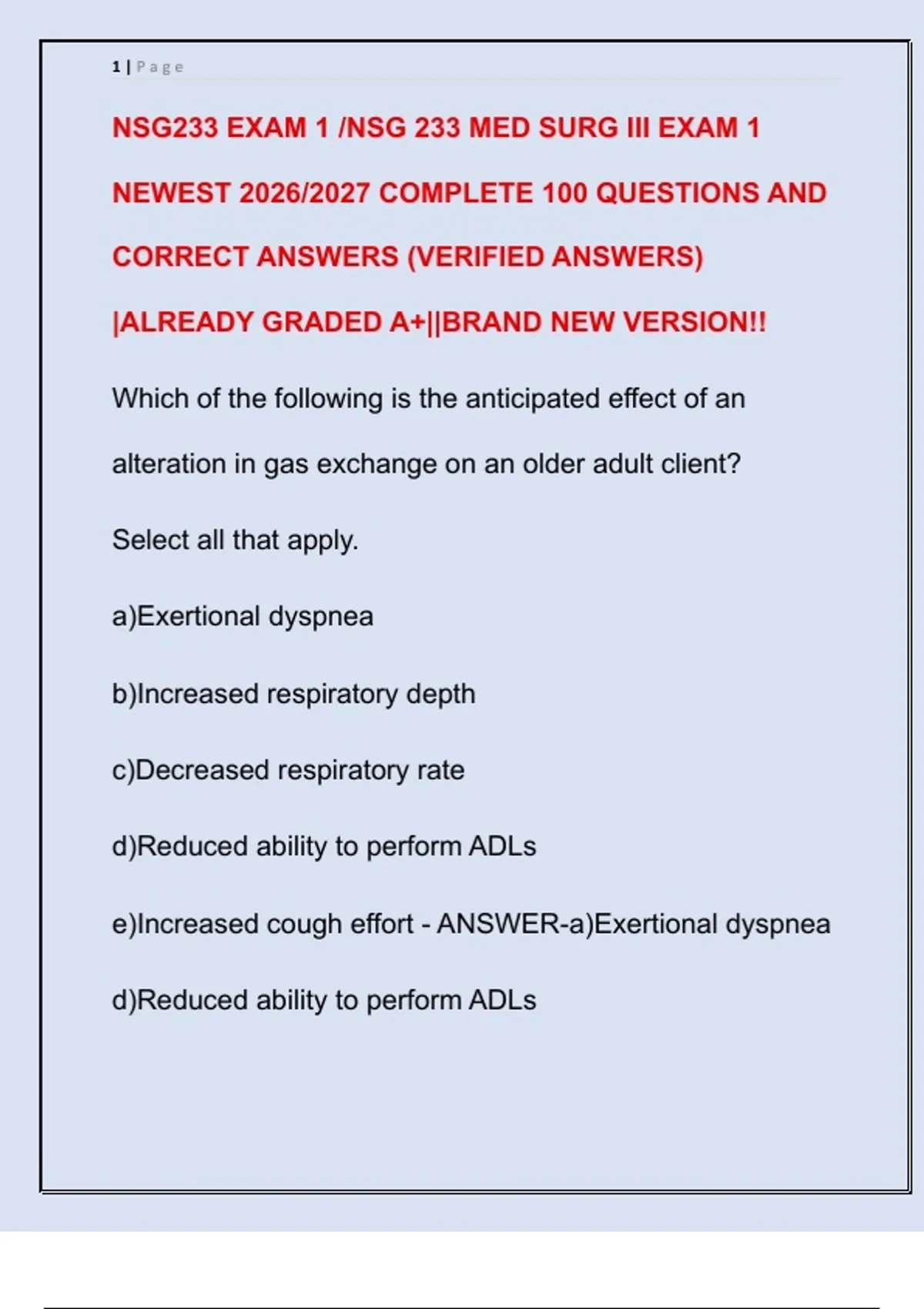 NSG233 EXAM 1 /NSG 233 MED SURG III EXAM 1 NEWEST 2026/2027 COMPLETE 100 QUESTIONS AND CORRECT ANSWERS (VERIFIED ANSWERS) |ALREADY GRADED A+||BRAND NEW VERSION!!
