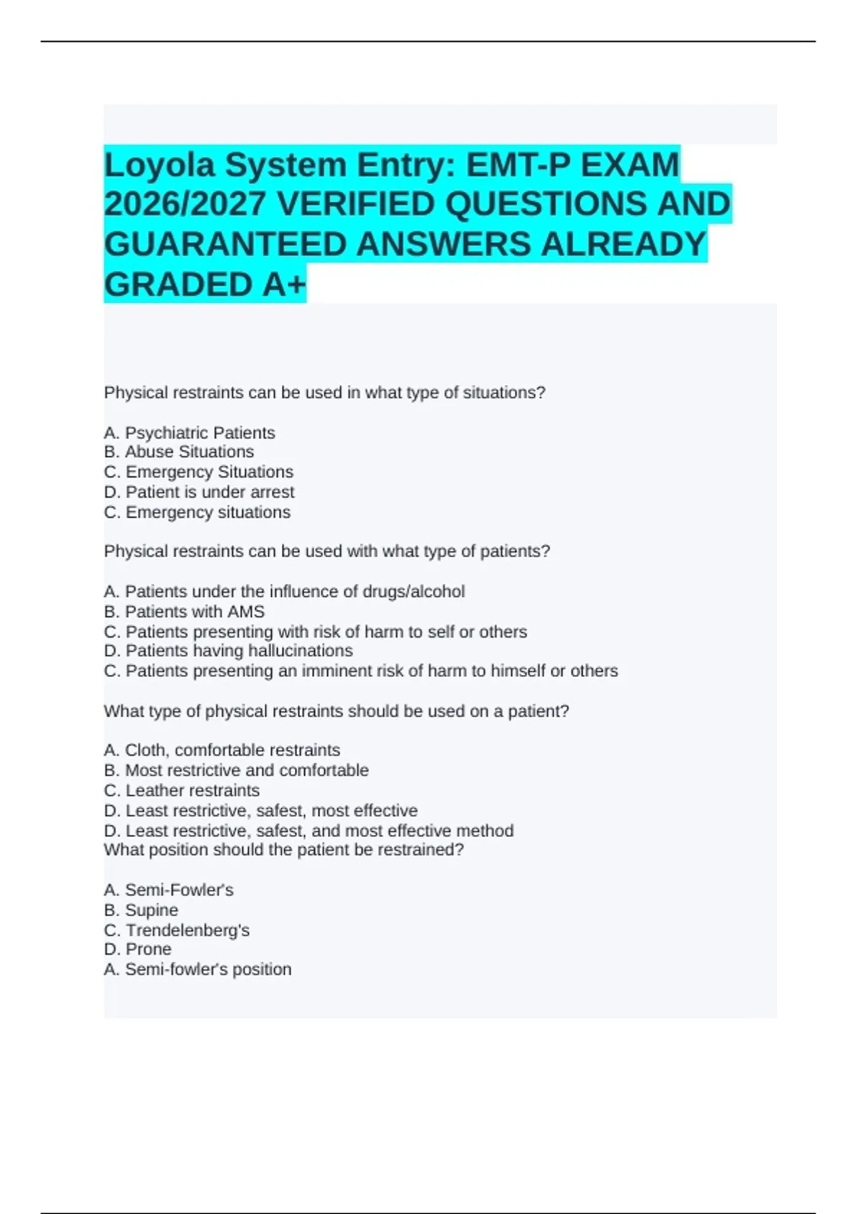 2026/2027 VERIFIED QUESTIONS AND