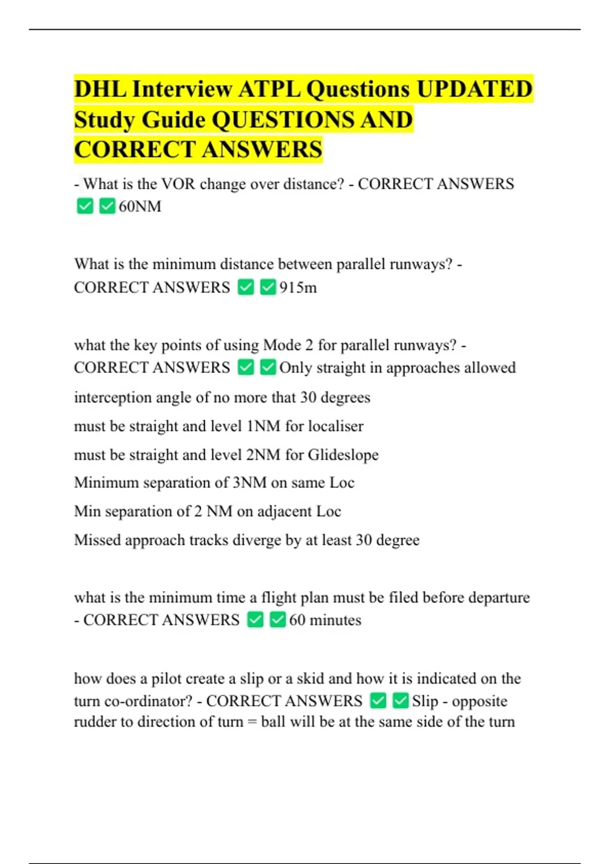 DHL Interview ATPL Questions UPDATED Study Guide QUESTIONS AND CORRECT ANSWERS