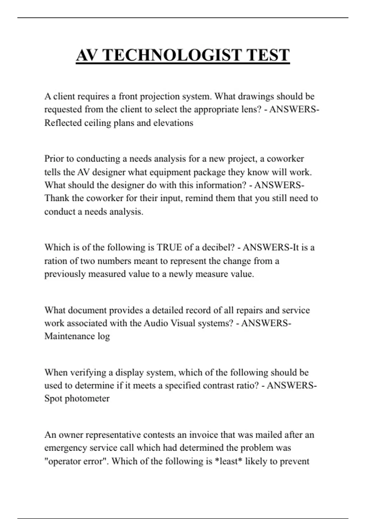 AV TECHNOLOGIST TEST QUESTIONS AND ANSWERS 2026