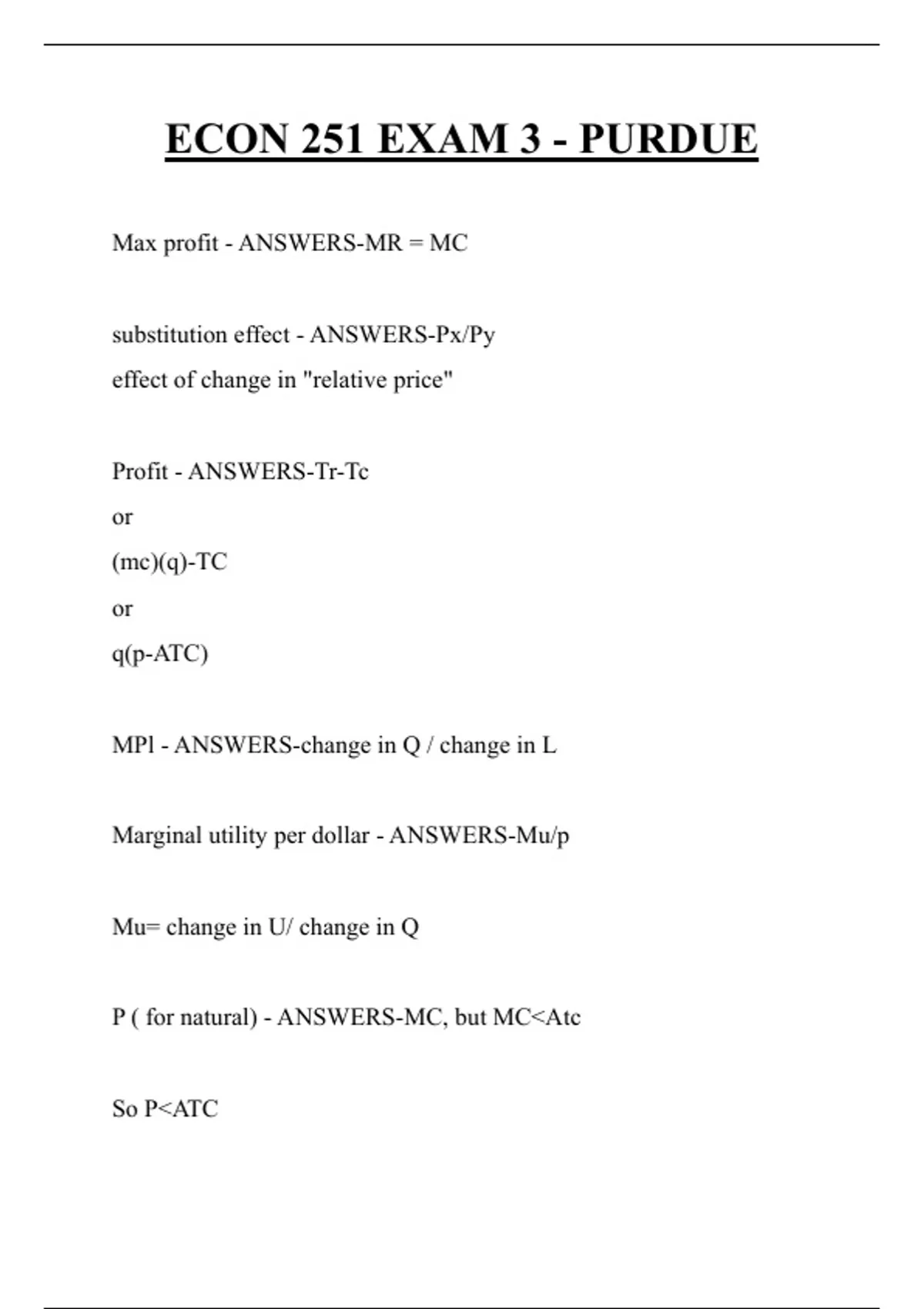 ECON 251 EXAM 3 - PURDUE QUESTIONS AND ANSWERS 2026