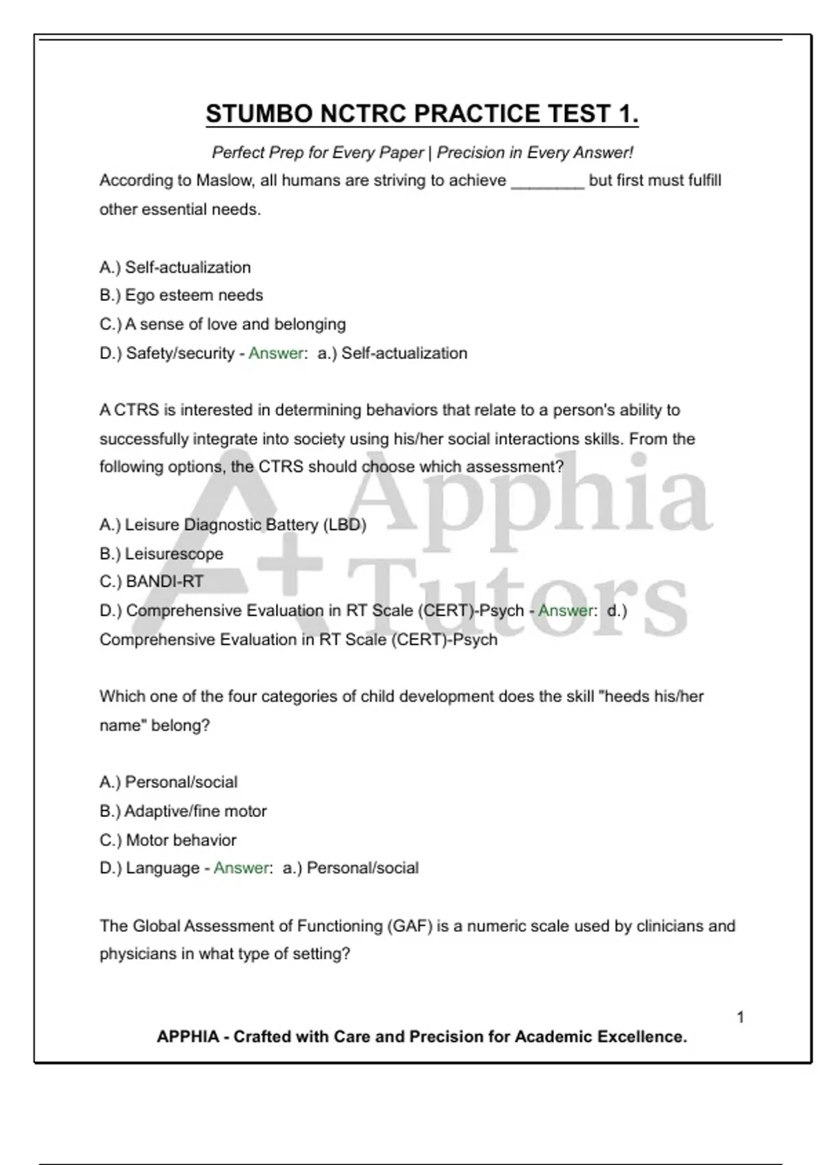STUMBO NCTRC PRACTICE TEST 1. Perfect Prep for Every Paper | Precision in Every Answer!