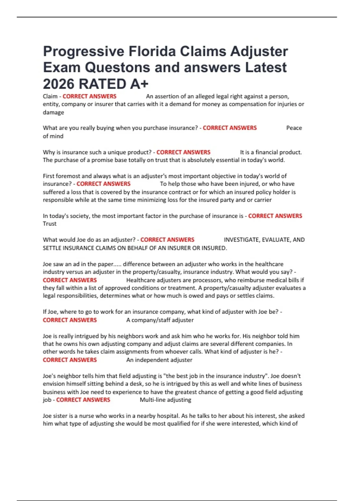 line of business would Joe be adjusting - CORRECT ANSWERS Property
