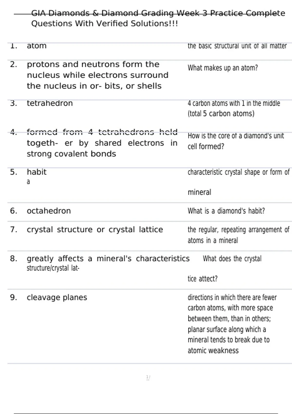 GIA Diamonds & Diamond Grading Week 3 Practice Complete