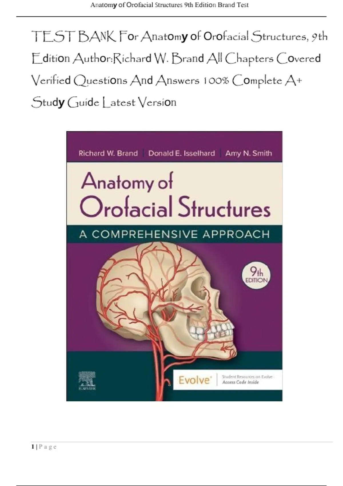, Anatomy of Orofacial Structures 9th Edition Brand Test