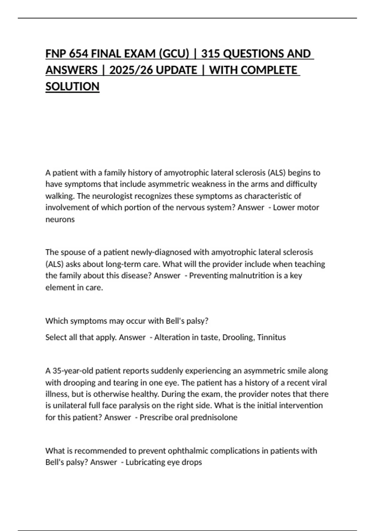 Bell's palsy? Answer - Lubricating eye drops