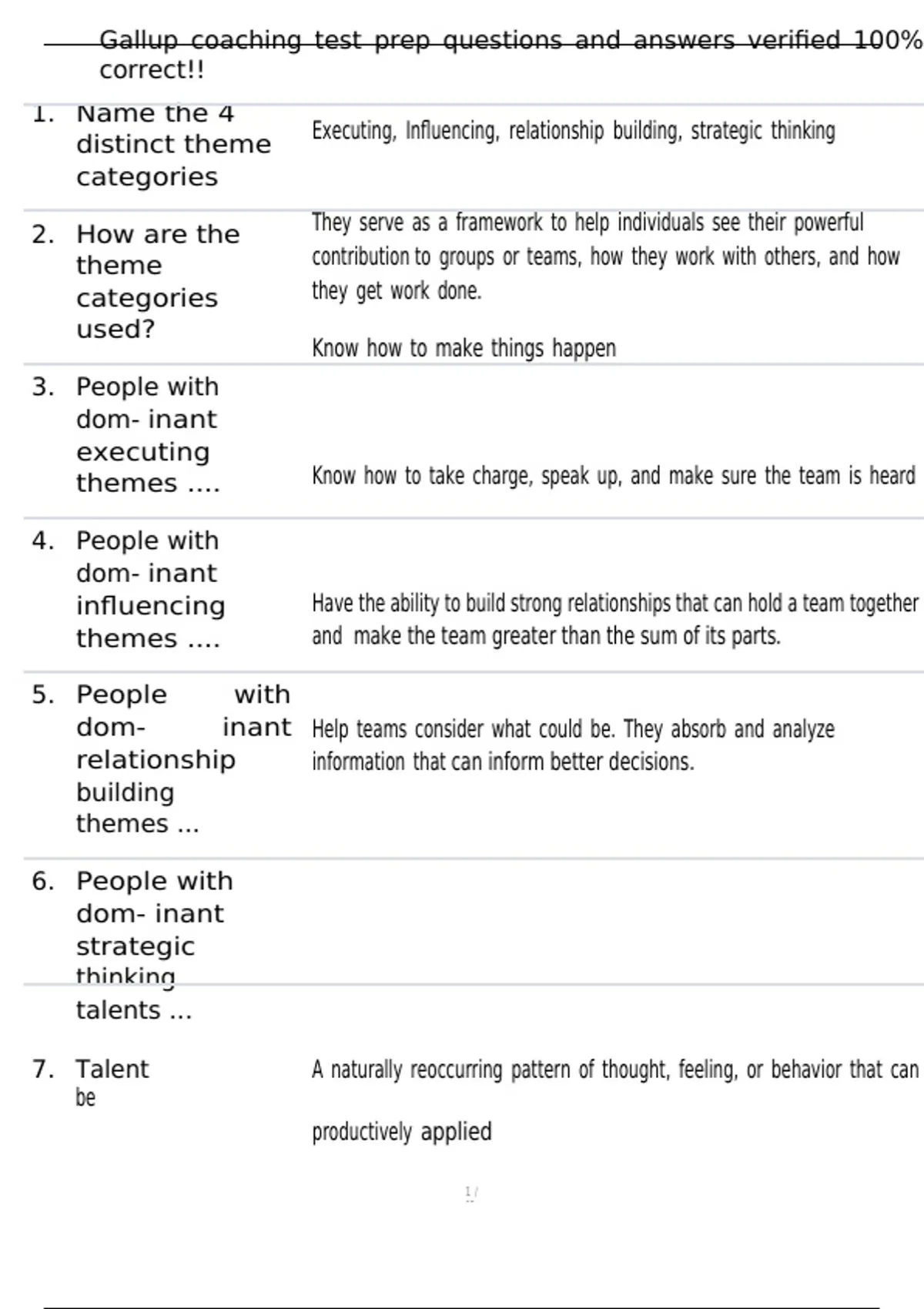 Gallup coaching test prep questions and answers verified 100%