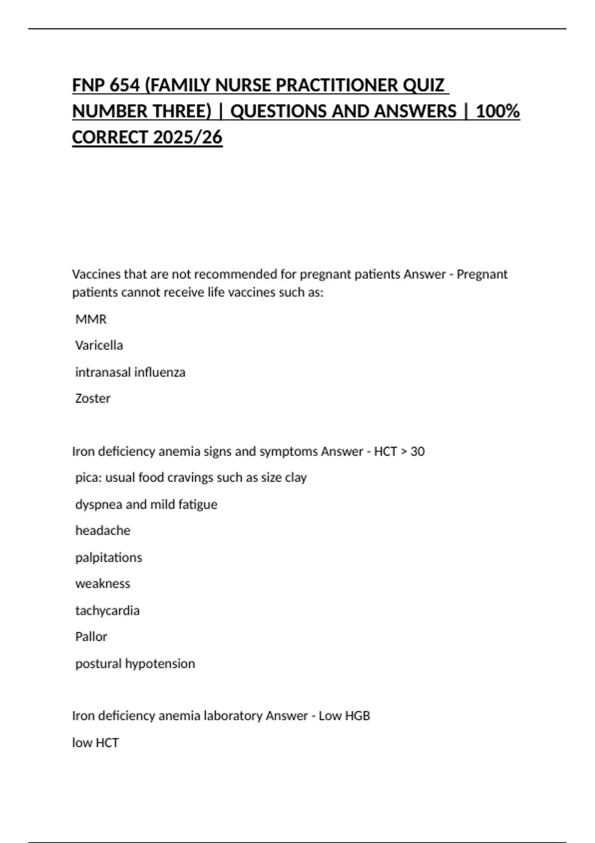 Iron deficiency anemia signs and symptoms Answer - HCT > 30