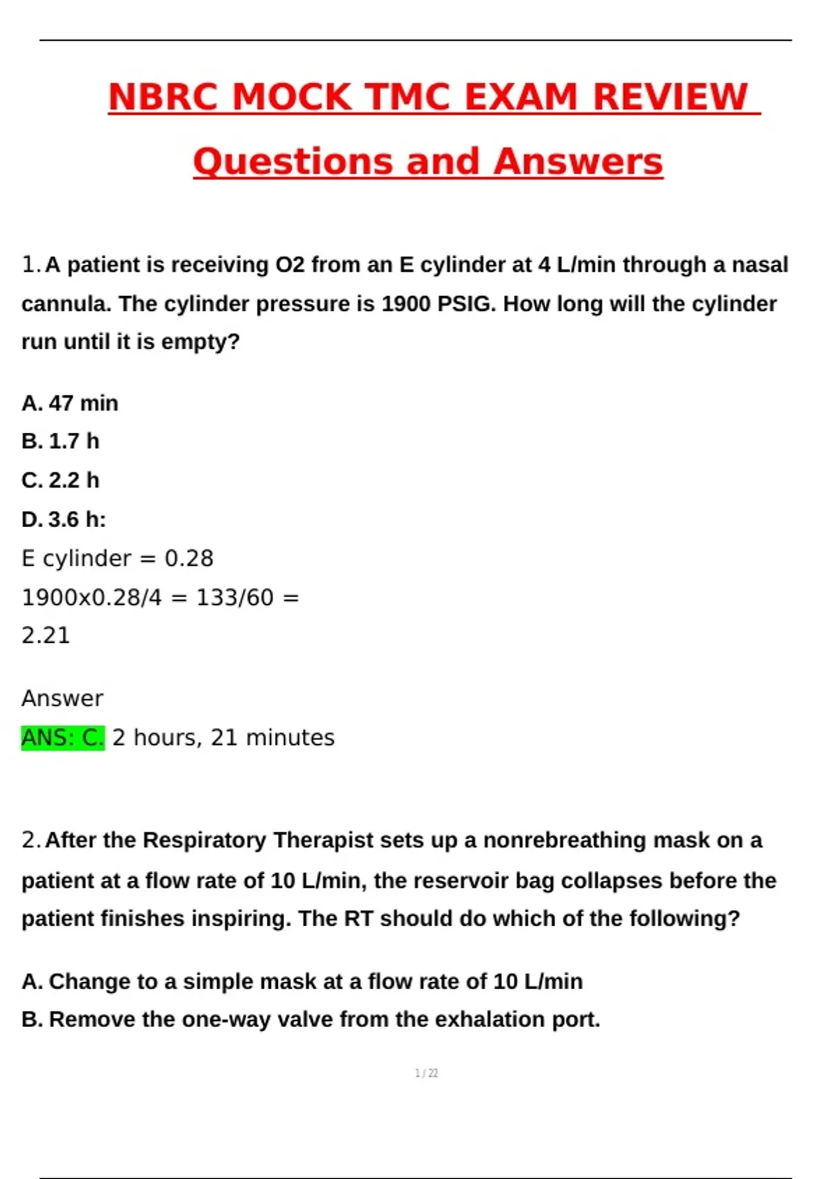 1.A patient is receiving O2 from an E cylinder at 4 L/min through a nasal