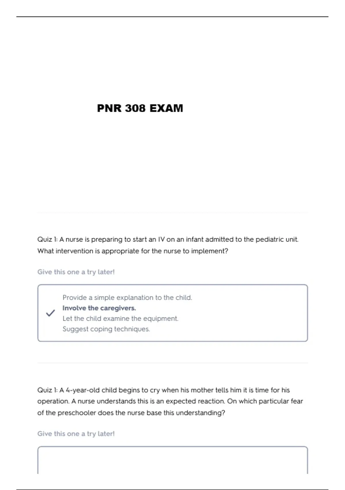 PNR 308 FIRST PAEDIATRICS QUESTIONS AND VERIFIED ANSWERS