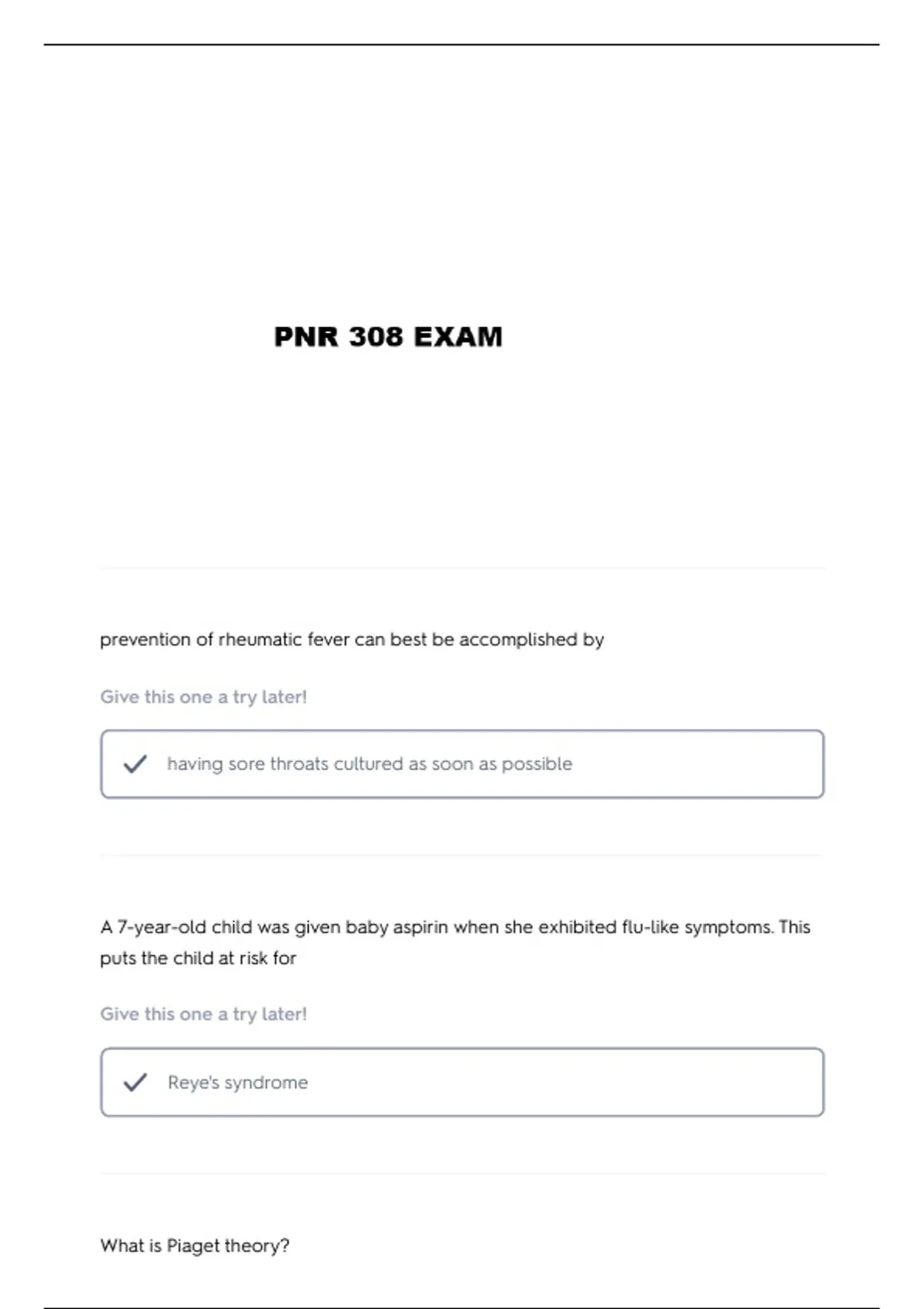 PNR 308 FINAL EXAM QUESTIONS AND VERIFIED ANSWERS