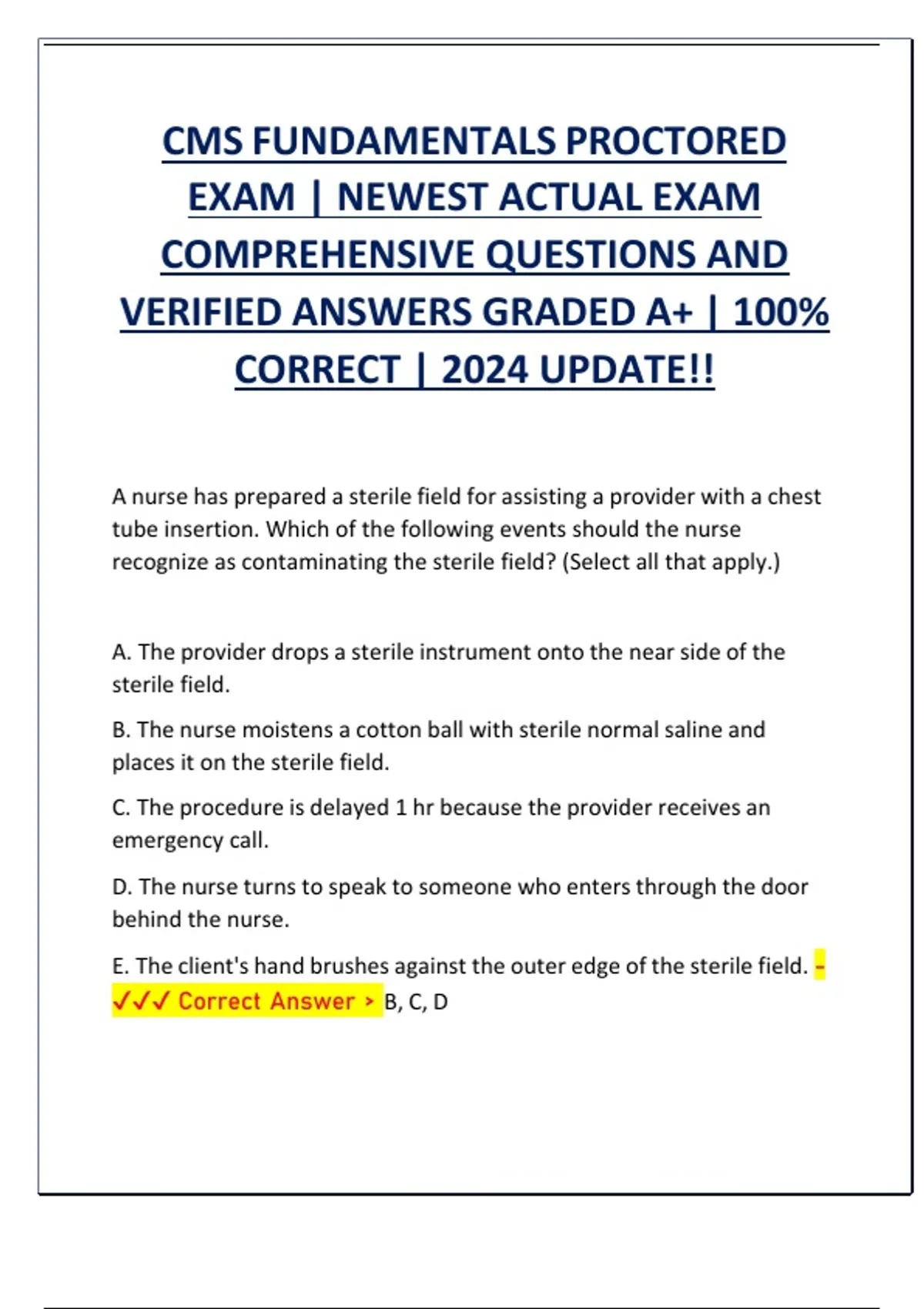 ✔✔✔ Correct Answer > A