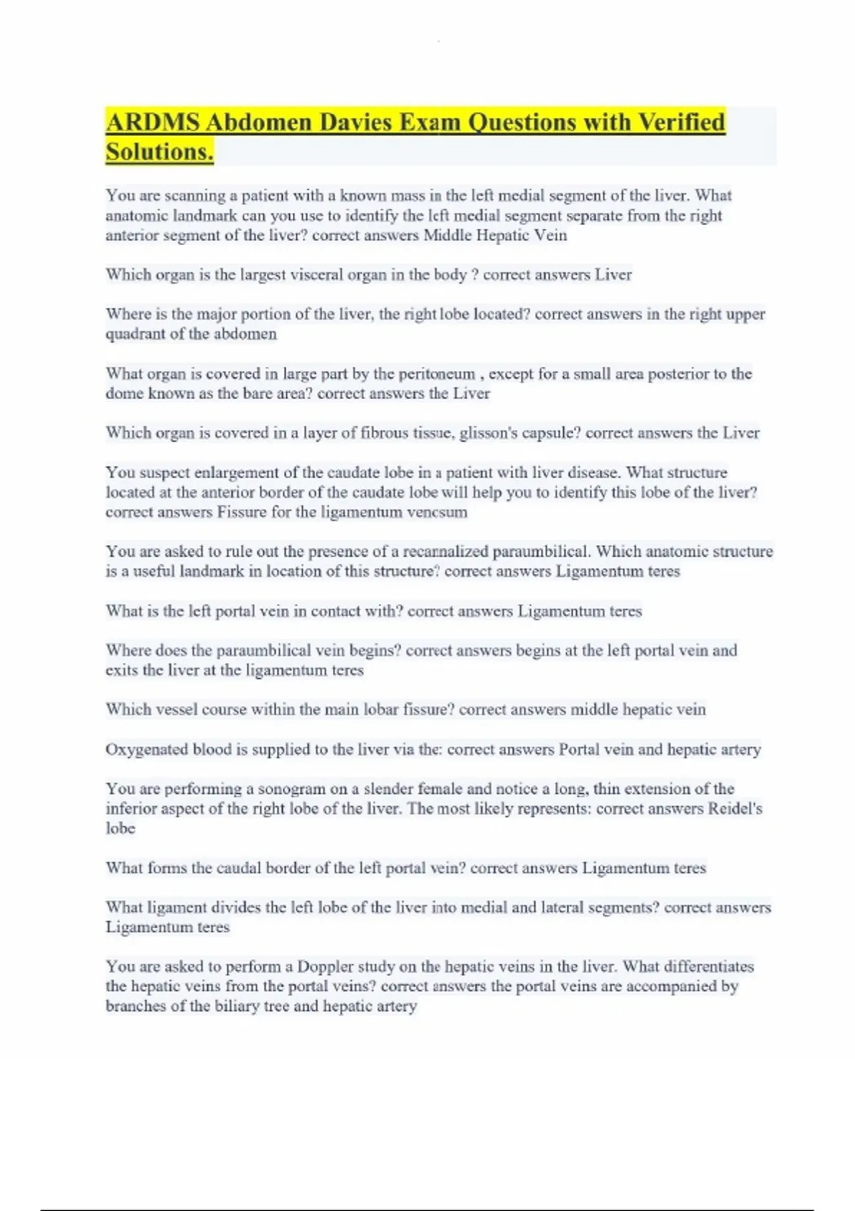 ARDMS Abdomen Davies Exam Questions with Verified Solutions.