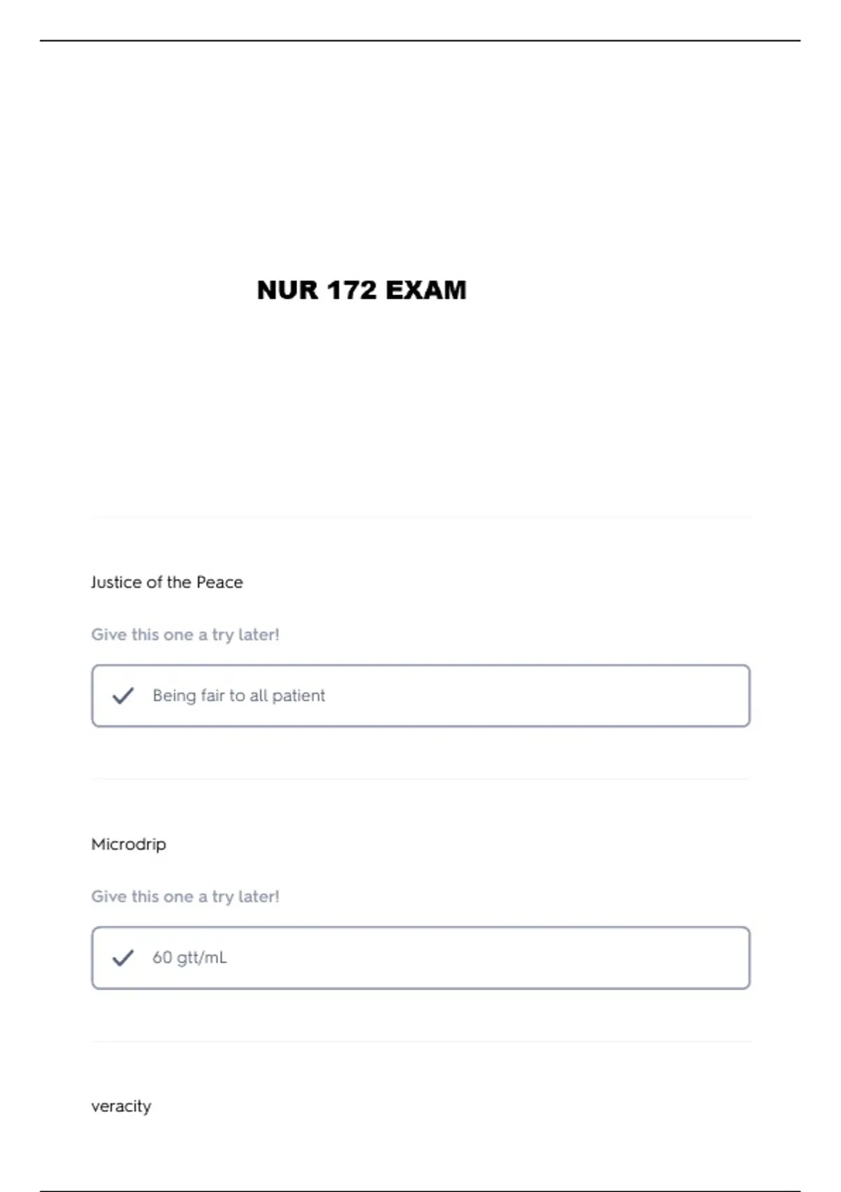NUR 172 QUIZ 1 QUESTIONS AND VERIFIED ANSWERS