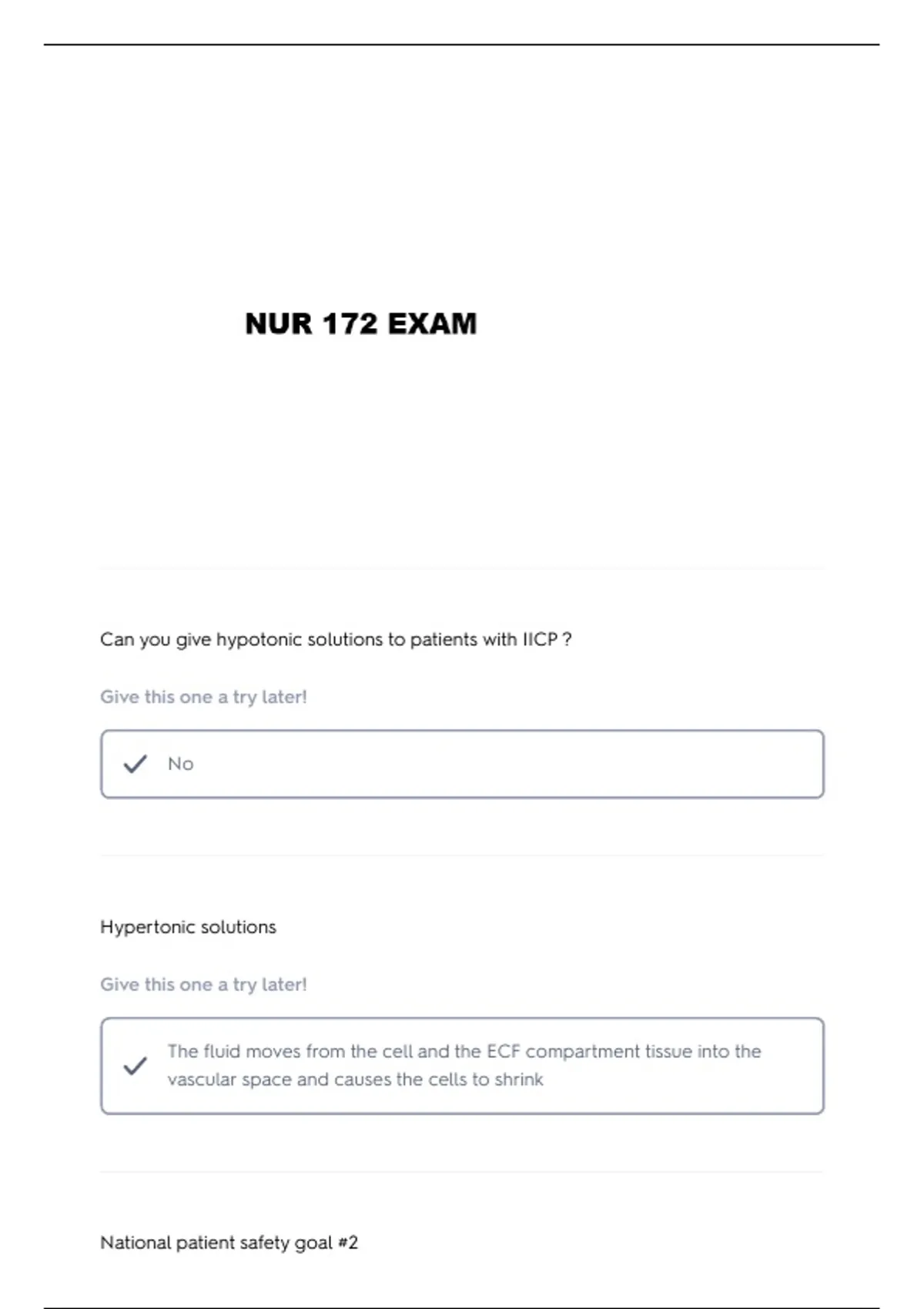 NUR 172 QUIZ 1 QUESTIONS AND VERIFIED ANSWERS