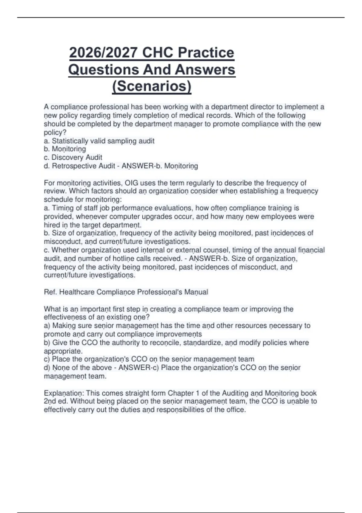2026/2027 CHC Practice Questions And Answers (Scenarios)